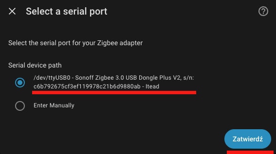 👉 /dev/ttyUSB0 - Sonoff Zigbee 3.0 USB Dongle Plus V2