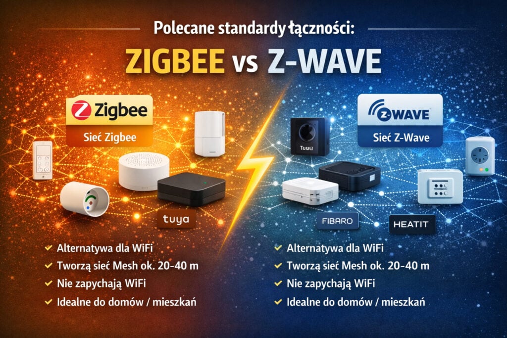 Jeśli zależy Ci na stabilności, skalowalności i realnych automatyzacjach – Zigbee i Z-Wave to dwa najbardziej polecane standardy.