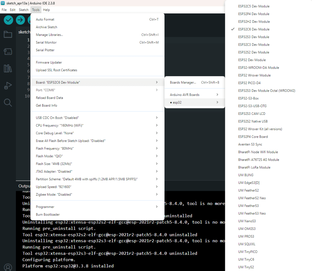 Ważne: dla ESP32-C6 wymagany jest nowszy core wersje 2.0.14+ lub najlepiej najnowsza dostępna obecnie 3.3.8.