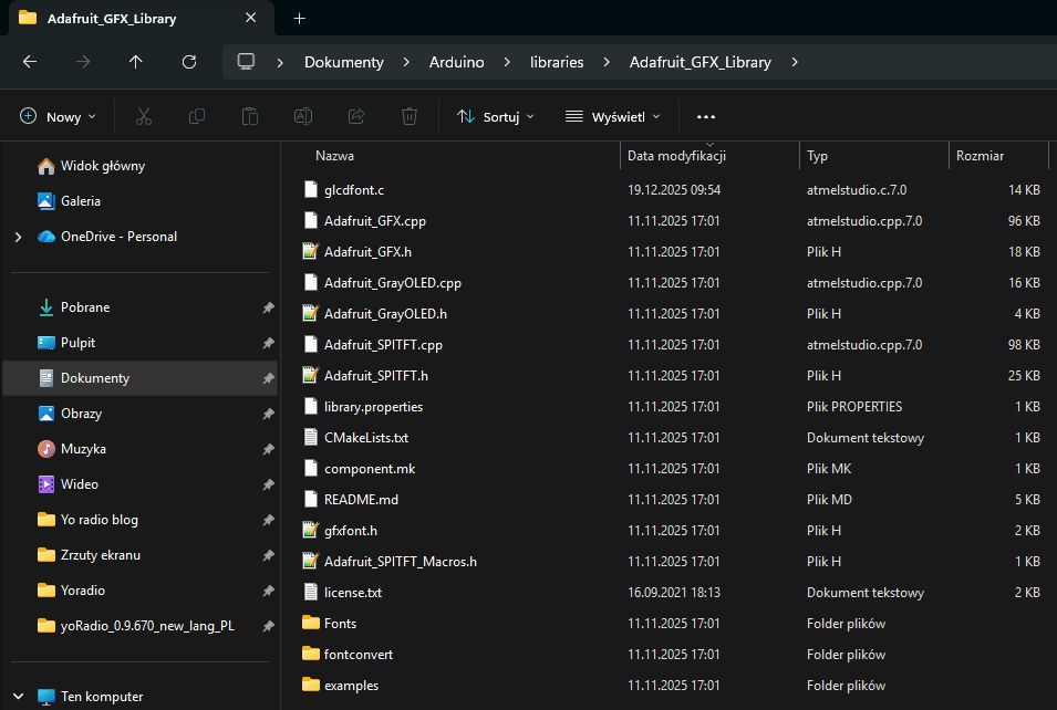Jeżeli plik o tej nazwie już istnieje, należy go zastąpić nową wersją. To właśnie ten plik zawiera zmodyfikowaną czcionkę umożliwiającą poprawne wyświetlanie polskich znaków diakrytycznych na ekranie TFT.