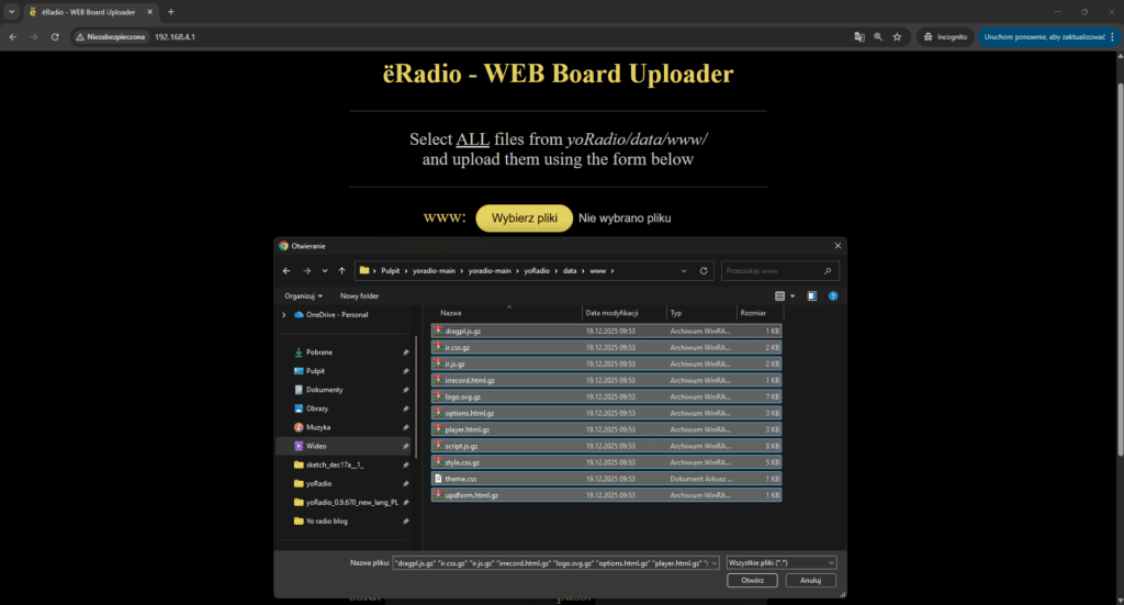 Oprogramowanie YoRadio: pobranie i przygotowanie plików