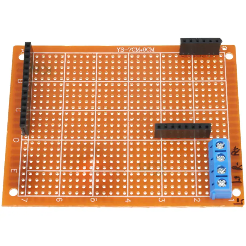 Płytka uniwersalna 7×9 cmpłytka uniwersalna z punktami lutowniczymi do montażu wszystkich komponentów. Posłuży jako baza naszego radia, umożliwiając trwałe połączenie elementów.