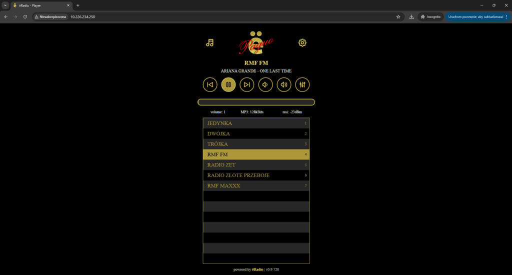 • sterować radiem bezpośrednio z poziomu przeglądarki.