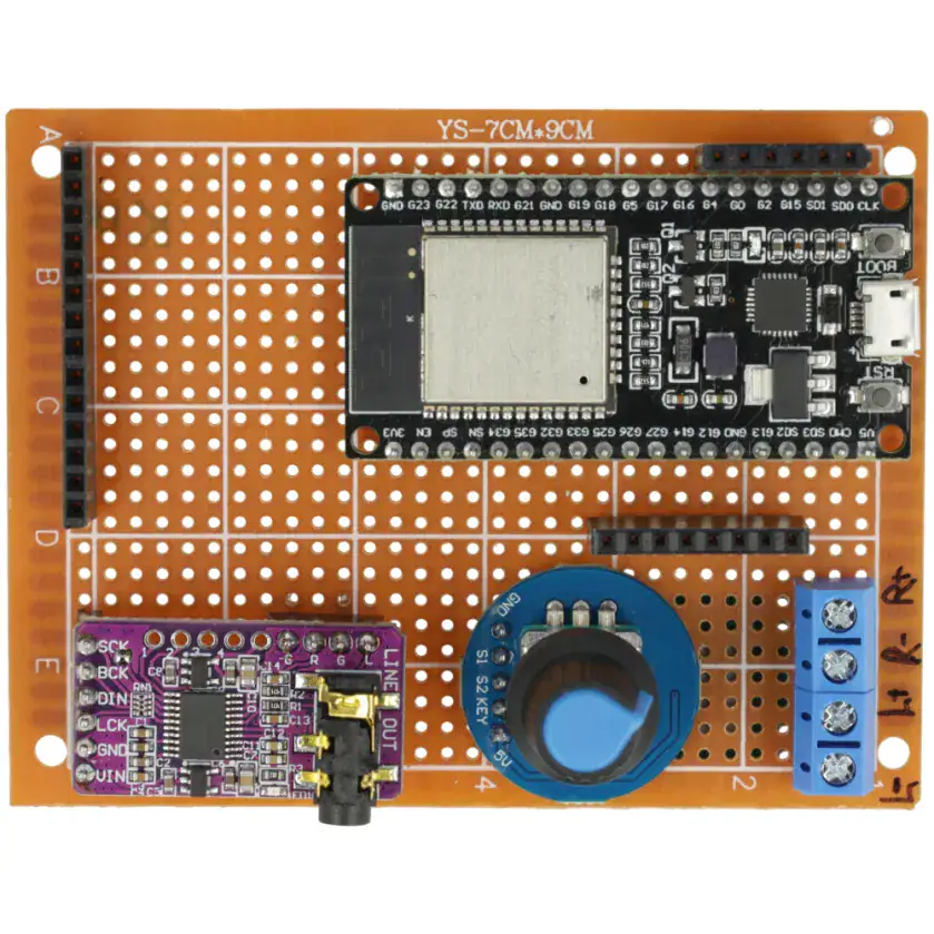 ESP32-WROOM-32Mikrokontroler, serce i mózg całego radia. Moduł ESP32 z Wi-Fi i Bluetooth zapewnia łączność internetową. Standardowy model z 4 MB Flash sprawdzi się idealnie.