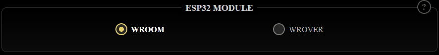 W pierwszym kroku w generatorze ustawień przechodzimy do sekcji ESP32 MODULE i wybieramy opcję WROOM, ponieważ w naszym projekcie wykorzystujemy moduł ESP32-WROOM-32, czyli najpopularniejszą wersję ESP32 z wbudowaną pamięcią Flash i standardowym zestawem peryferiów. Taki wybór zapewnia pełną kompatybilność z przygotowanym przez nas hardware’em i jest właściwą opcją dla większości płytek ESP32 dostępnych w sprzedaży.
