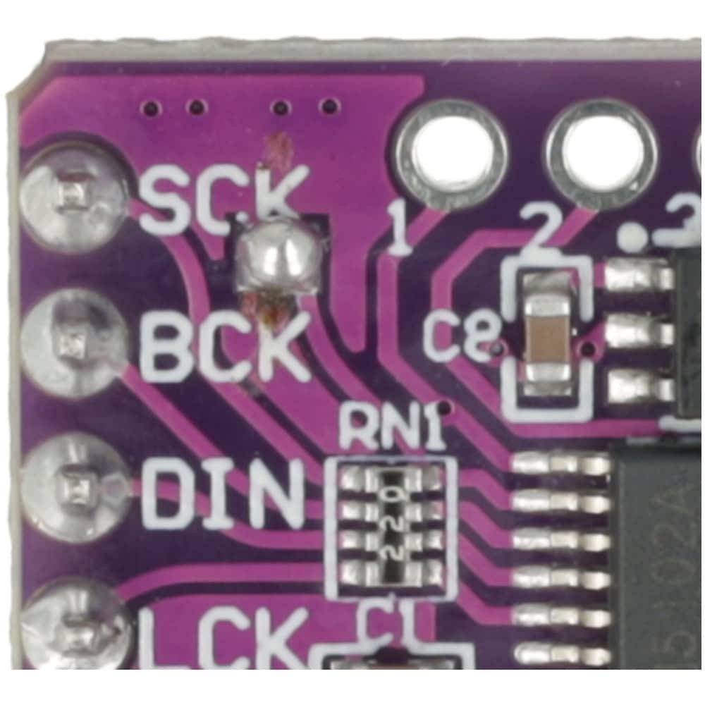 Prawidłowa konfiguracja przetwornika PCM5102 jest kluczowa dla poprawnego działania dźwięku w projekcie. Na początku należy zlutować zworę SCK znajdującą się na module, co pozwala na wykorzystanie wewnętrznego generatora zegara.