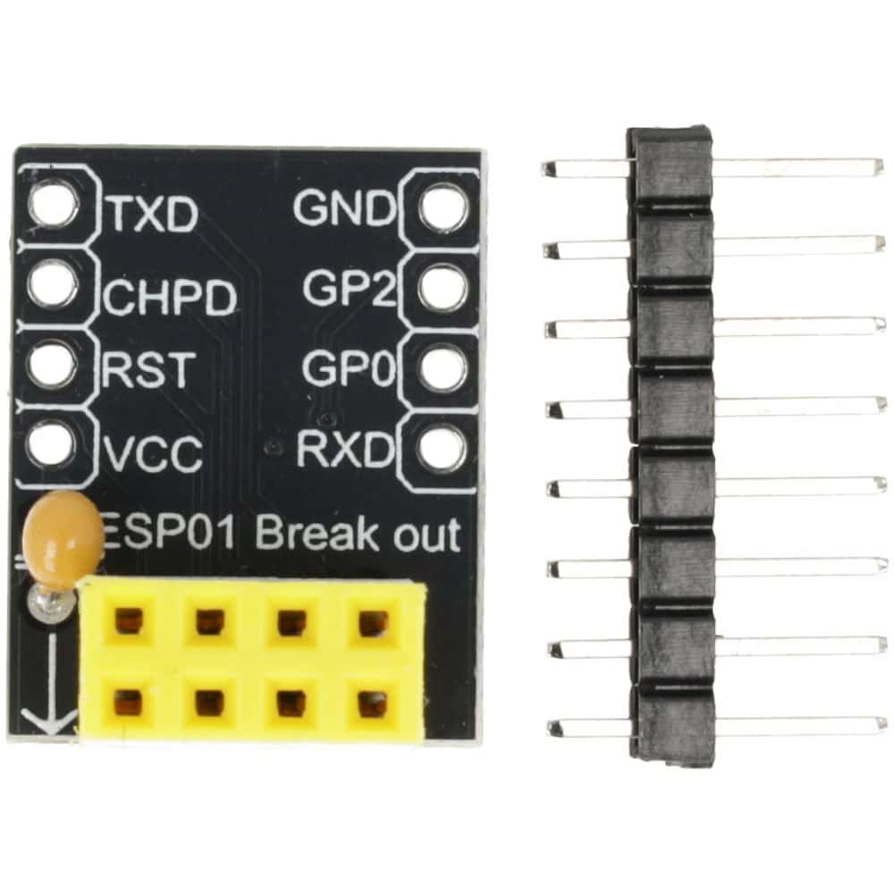 🔌 Pasujące moduły: ESP-01, ESP-01S 💡 Elementy dodatkowe: Kondensator filtrujący na zasilaniu 🧰 Zawartość zestawu: Goldpiny do wlutowania 🧱 Rozstaw pinów: Standard 2,54 mm 📐 Wymiary: 15 x 19 mm ⚖️ Waga: 3,15 g