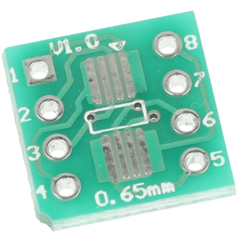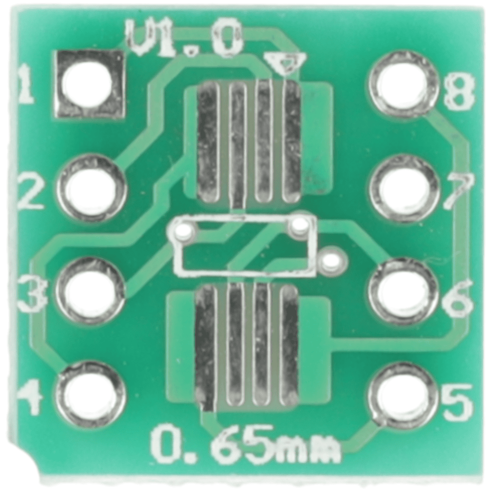 📏 Typ obudowy wejściowej: SOP8 0,65 mm 📐 Typ wyjścia: DIP8 2,54 mm 🔄 Konwersja: SOP8 → DIP8 🧱 Materiał: Laminat PCB jednostronny 🔧 Liczba pinów: 8 🛠 Zastosowanie: Prototypowanie, testowanie układów SOP8 📏 Wymiary: 25 × 10 mm ⚖️ Waga: 0,42 g