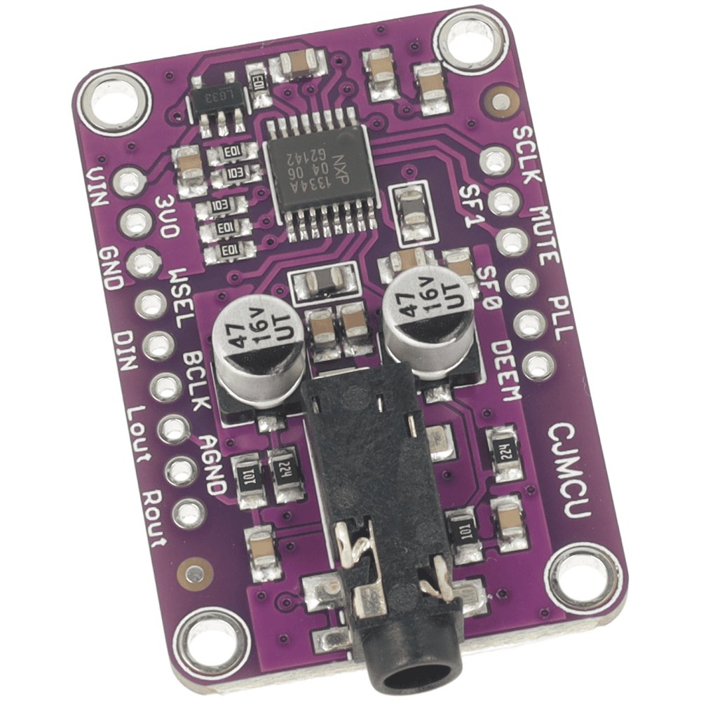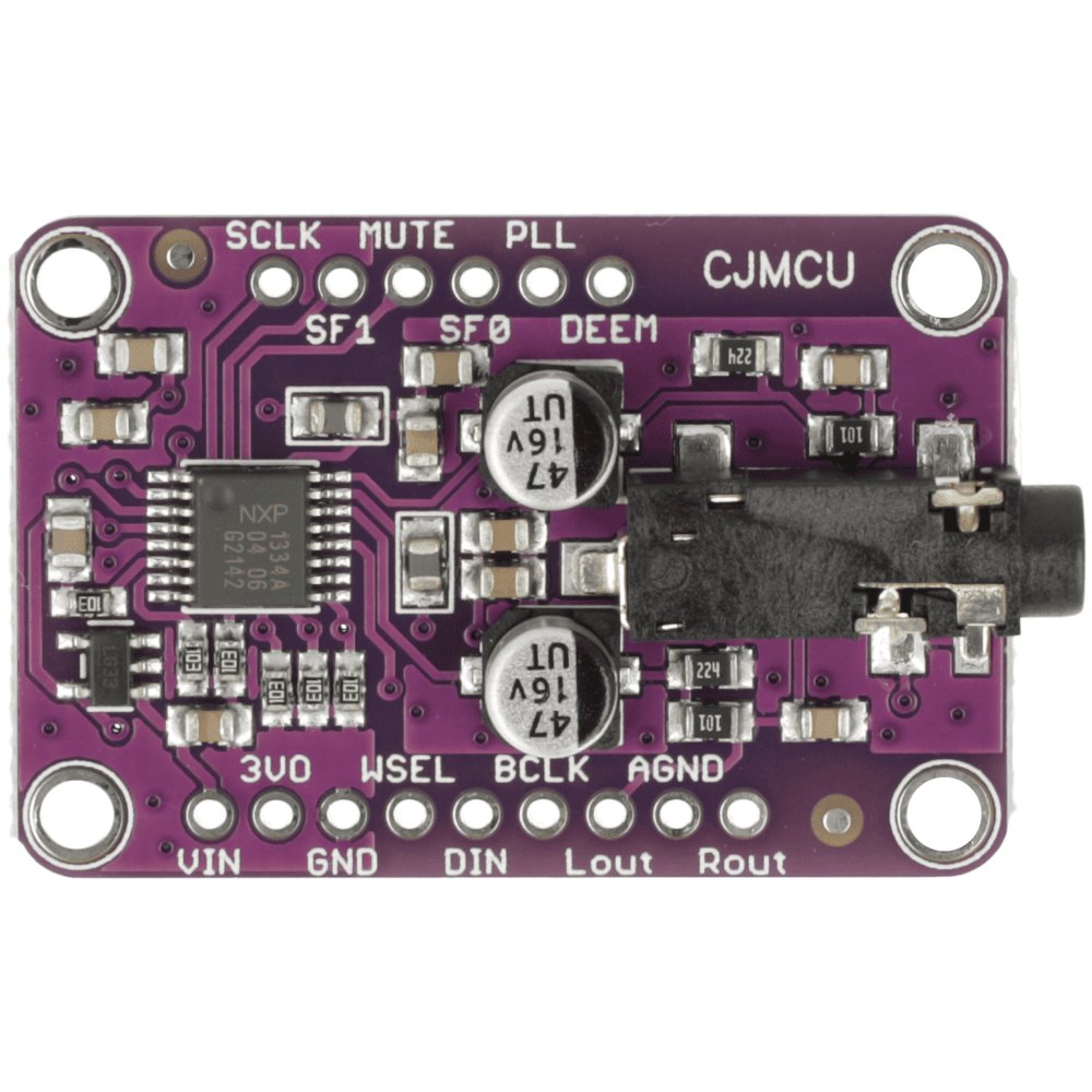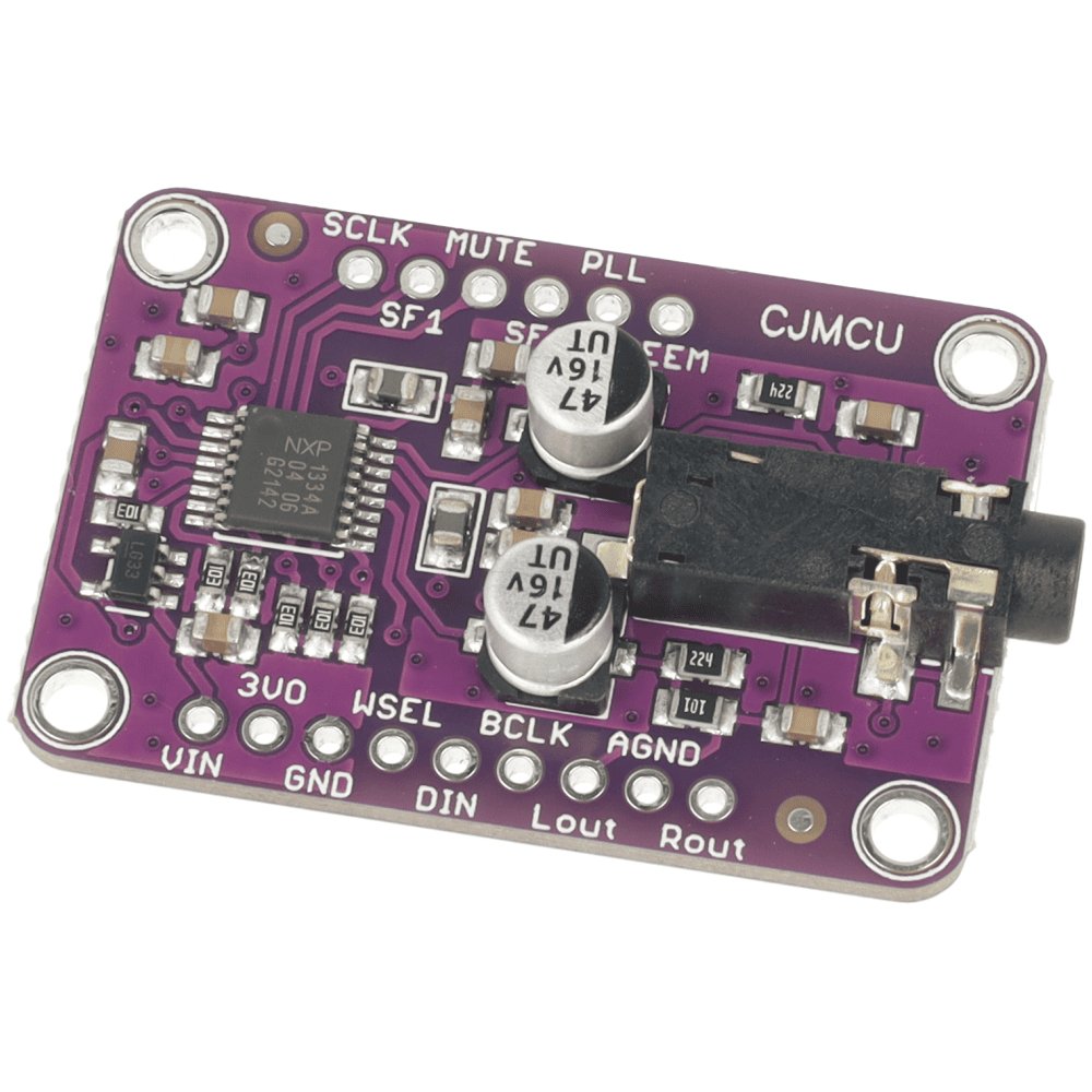 CJMCU-1334 to moduł przetwornika cyfrowo-analogowego UDA1334A z interfejsem I2S, przeznaczony do projektów audio z Arduino, STM i Raspberry Pi. Obsługuje poziomy logiczne 3,3 V – 5 V oraz posiada wbudowaną PLL, dzięki czemu może pracować bez sygnału MCLK. Zapewnia czyste, liniowe wyjście stereo o wysokiej jakości dźwięku.