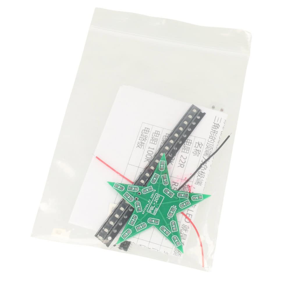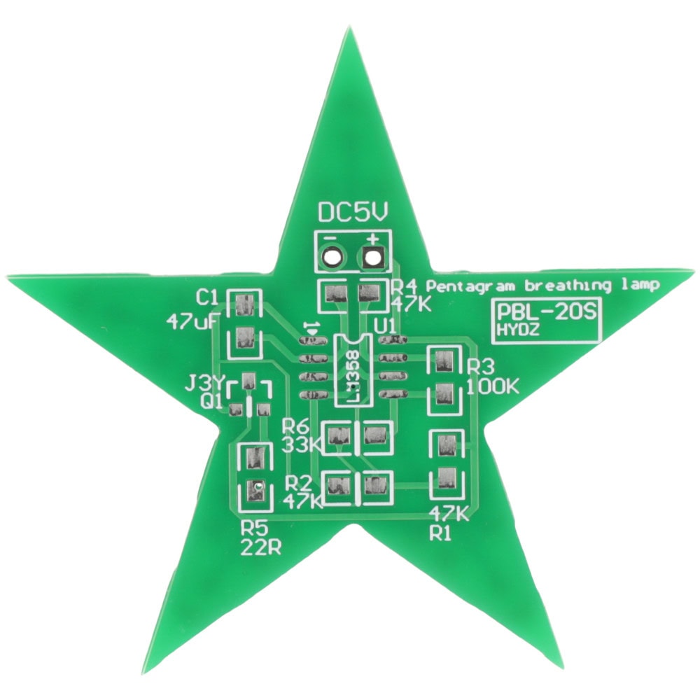 Zestaw DIY w kształcie gwiazdy, w którym zielone diody LED płynnie rozjaśniają się i gasną, tworząc efekt „oddychania”. Działa przy napięciu 4–6 V DC i wykorzystuje układ LM358 oraz tranzystor 8050-J3Y.
