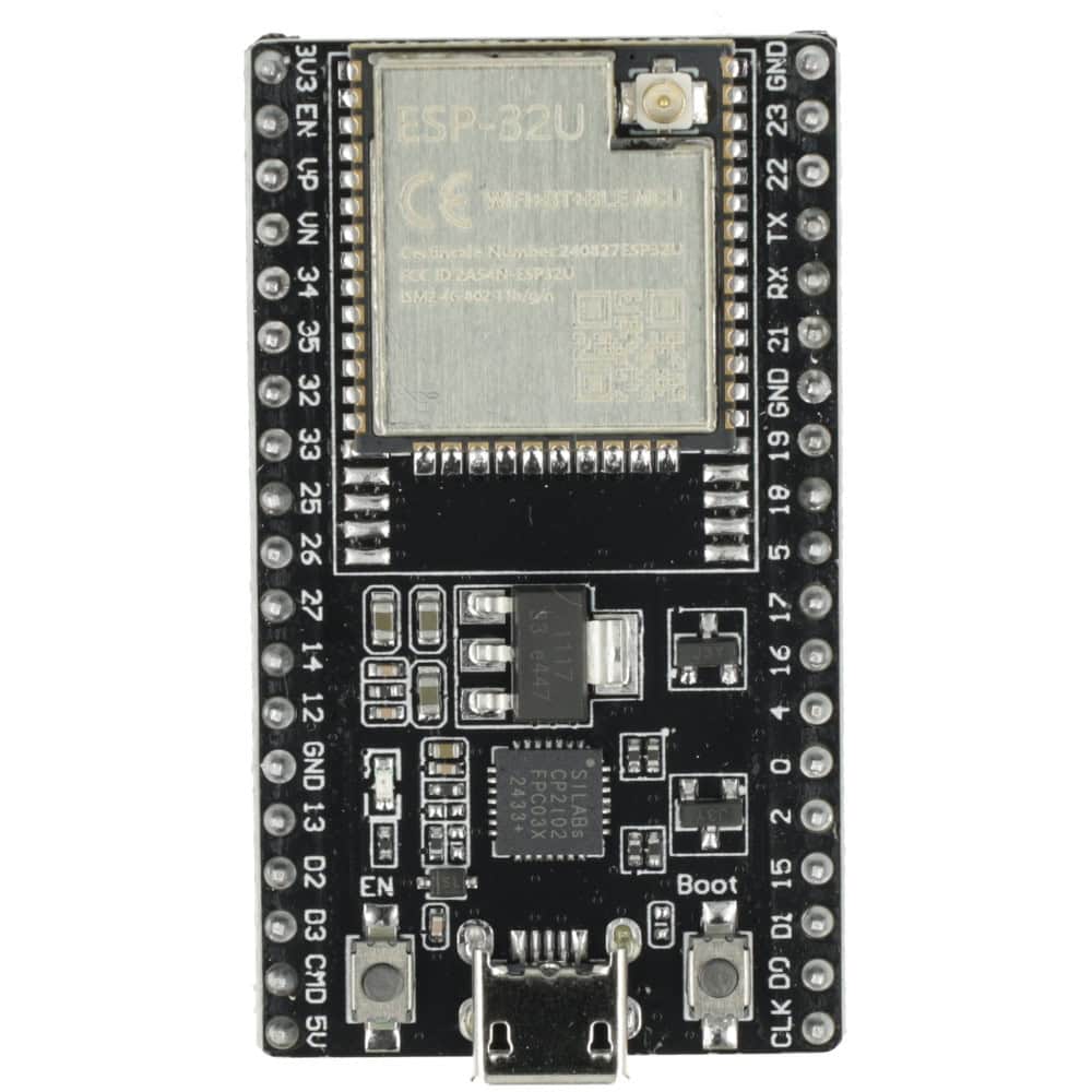 Płytka deweloperskaESP-WROOM-32U z układem ESP32 to popularna i ceniona platforma do tworzenia sprzętu i oprogramowania z dziedziny IoT.