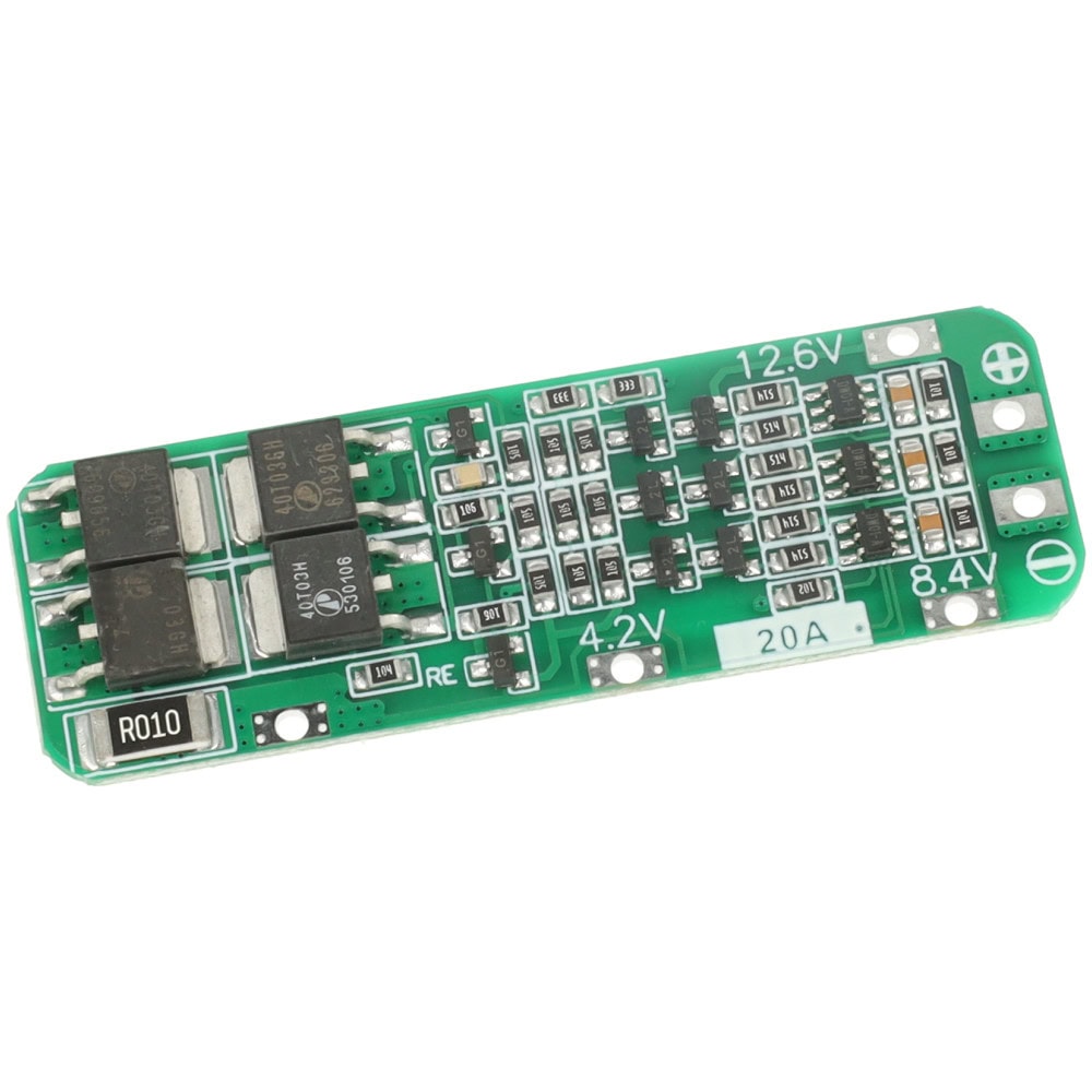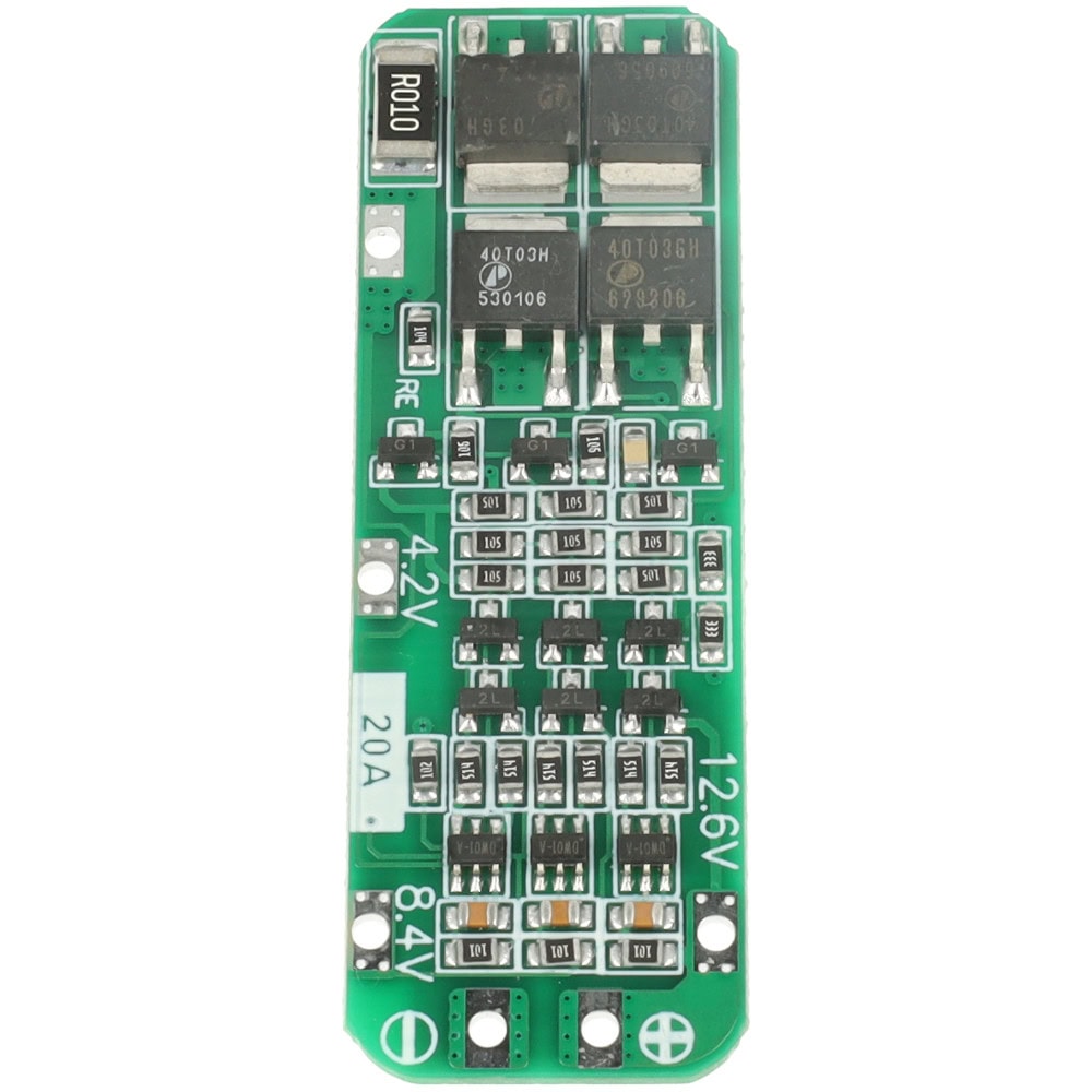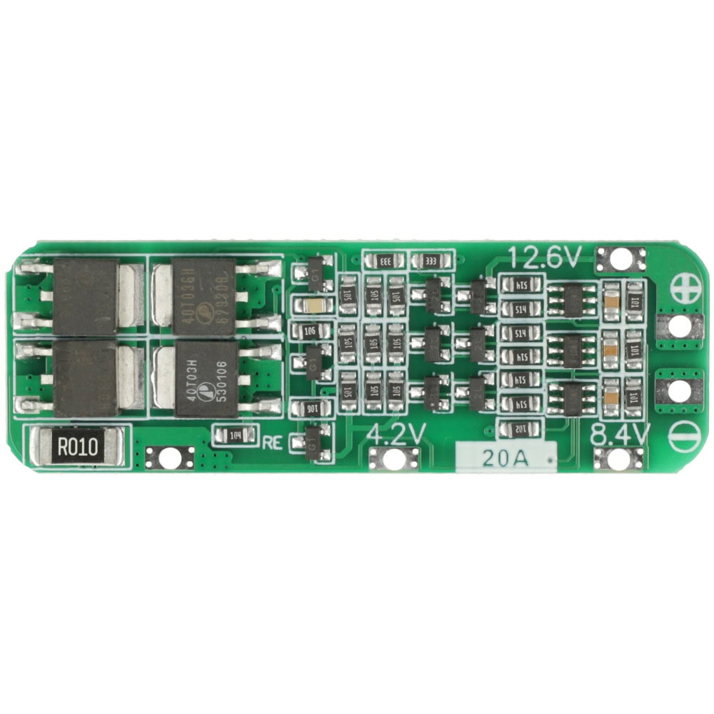 Zapewnia skuteczne ładowanie oraz zabezpieczenie pakietu o napięciu 10,8–12,6 V (3,6–4,2 V na ogniwo). Obsługuje maksymalny prąd rozładowania 20 A i ładowania 10 A.
