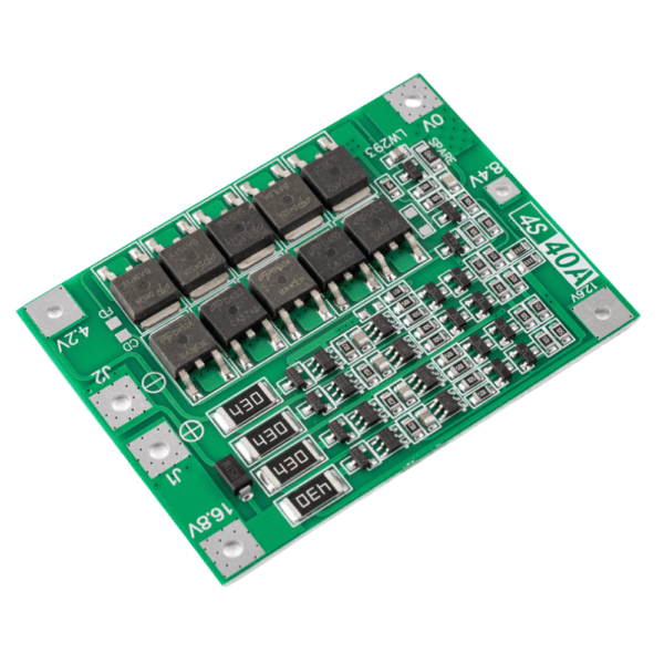 Zaawansowany moduł BMS do pakietów Li-Ion 4S14,4–16,8 V z prądem rozładowania 40 A i ładowania 20 A. Zapewnia ochronę przed przeładowaniem, rozładowaniem, przeciążeniem i zwarciem. Kompatybilny z ogniwami 18650 i innymi akumulatorami Li-Ion.