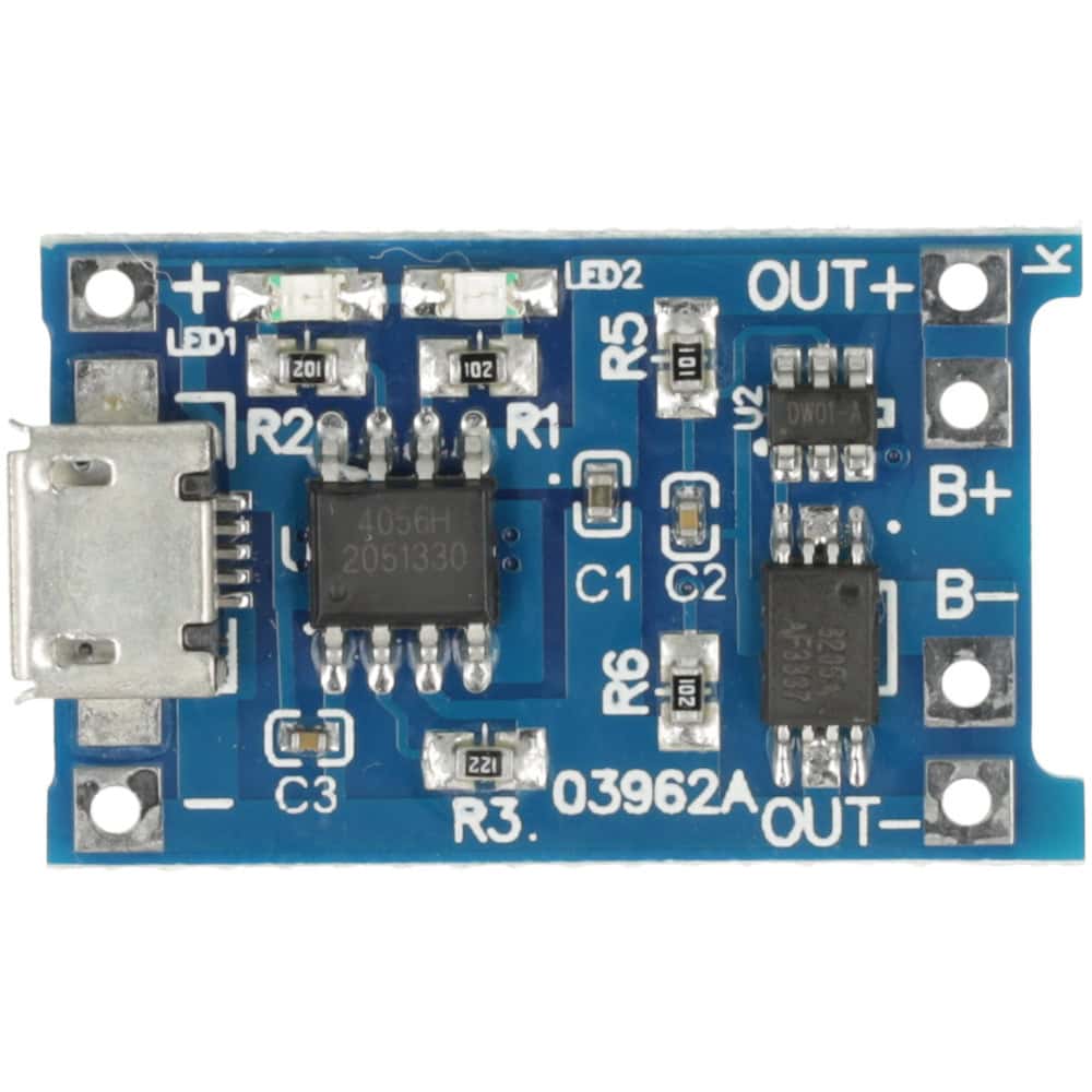 Ładowarka micro USB z zabezpieczeniami. Dedykowana do akumulatorów Li-Ion i Li-Pol 18650.