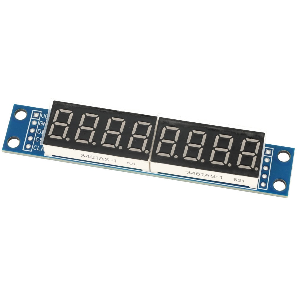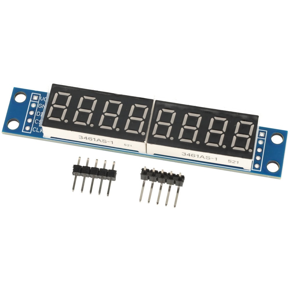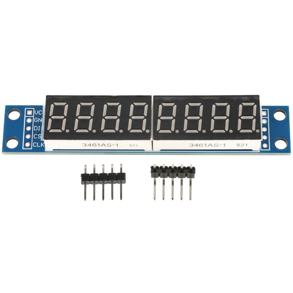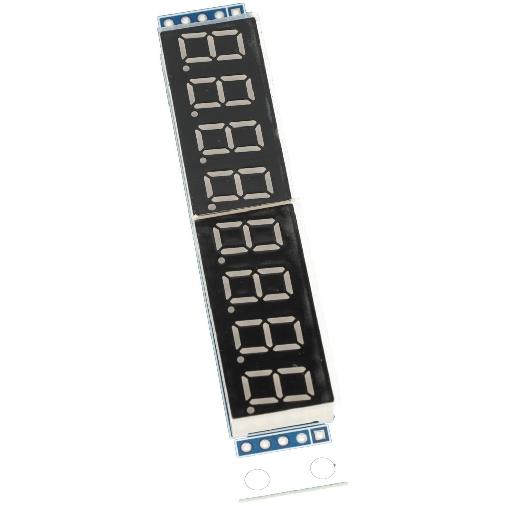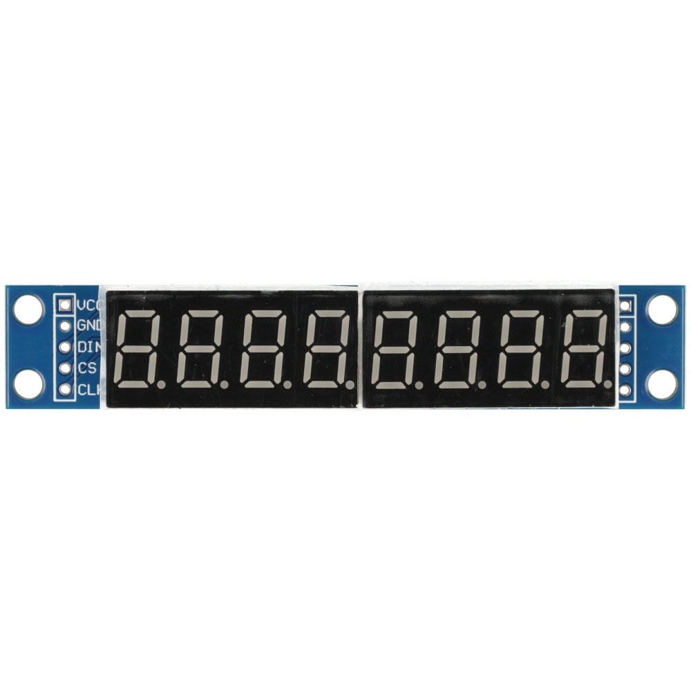 Moduł z układem MAX7219 umożliwia sterowanie 8-cyfrowym wyświetlaczem 7-segmentowym przez interfejs SPI, eliminując potrzebę multipleksowania. Idealny do mikrokontrolerów, oferuje możliwość łączenia kaskadowego. Zasilany 5 V, wyposażony w czerwone cyfry i goldpiny proste i kątowe do samodzielnego montażu.