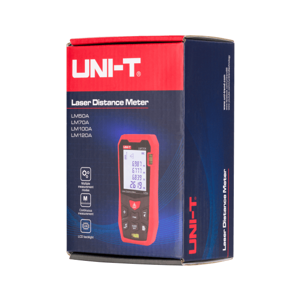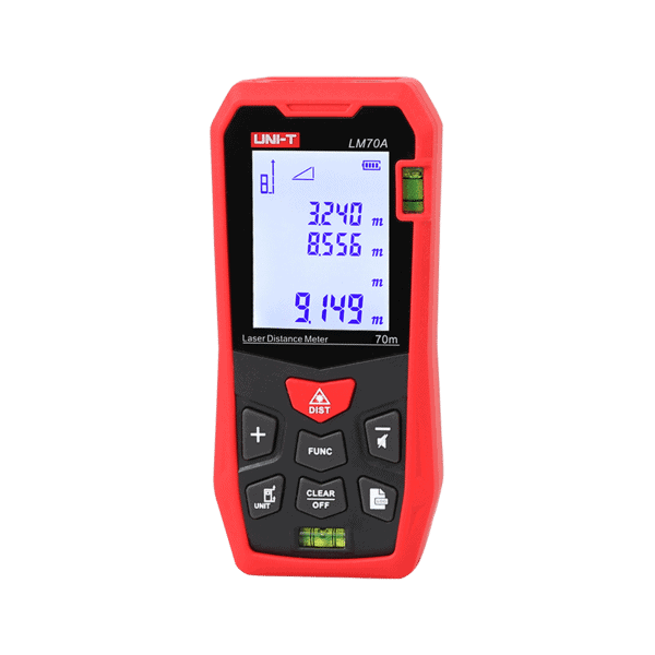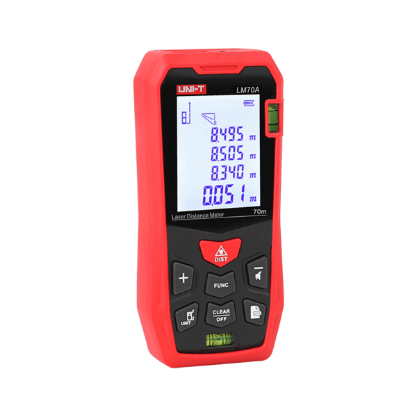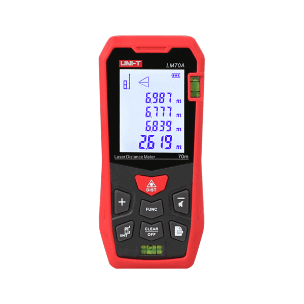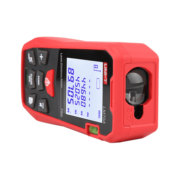 Miernik dystansu UNI-T LM70A to precyzyjne narzędzie laserowe do pomiaru odległości o zasięgu aż 70 m, wyposażone w laser klasy 2 i wyświetlacz LCD 2”.