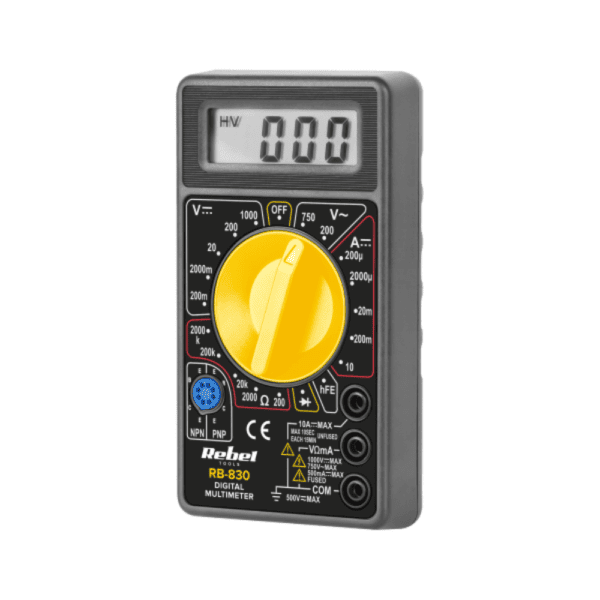 Miernik uniwersalny REBEL RB-830 to multimetr o podstawowych funkcjach służący do pomiarów wielkości elektrycznych. Miernik uniwersalny to niezastąpione narzędzie w warsztacie każdego elektronika i elektryka.