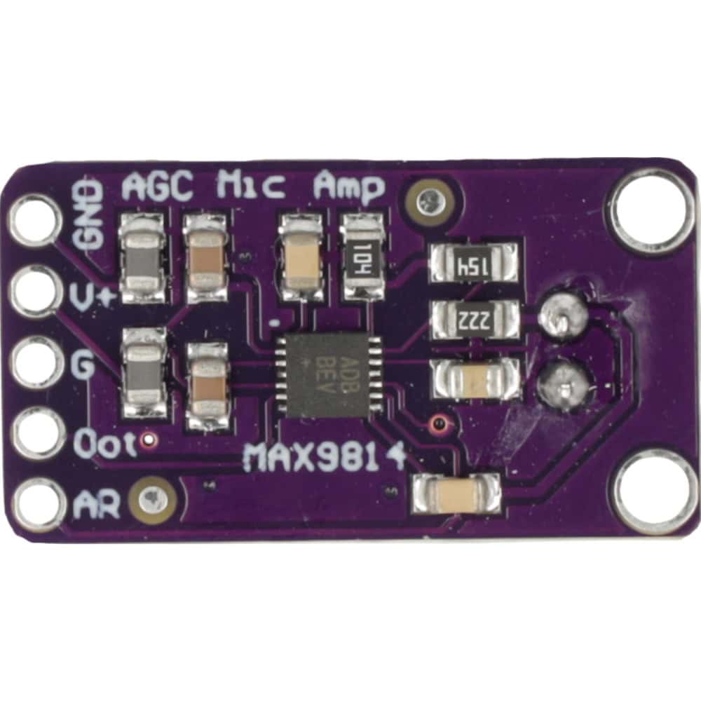 🎤 Wbudowany wzmacniacz MAX9814 z AGC Automatyczna regulacja wzmocnienia pozwala na optymalne dostosowanie głośności w zależności od poziomu sygnału wejściowego.