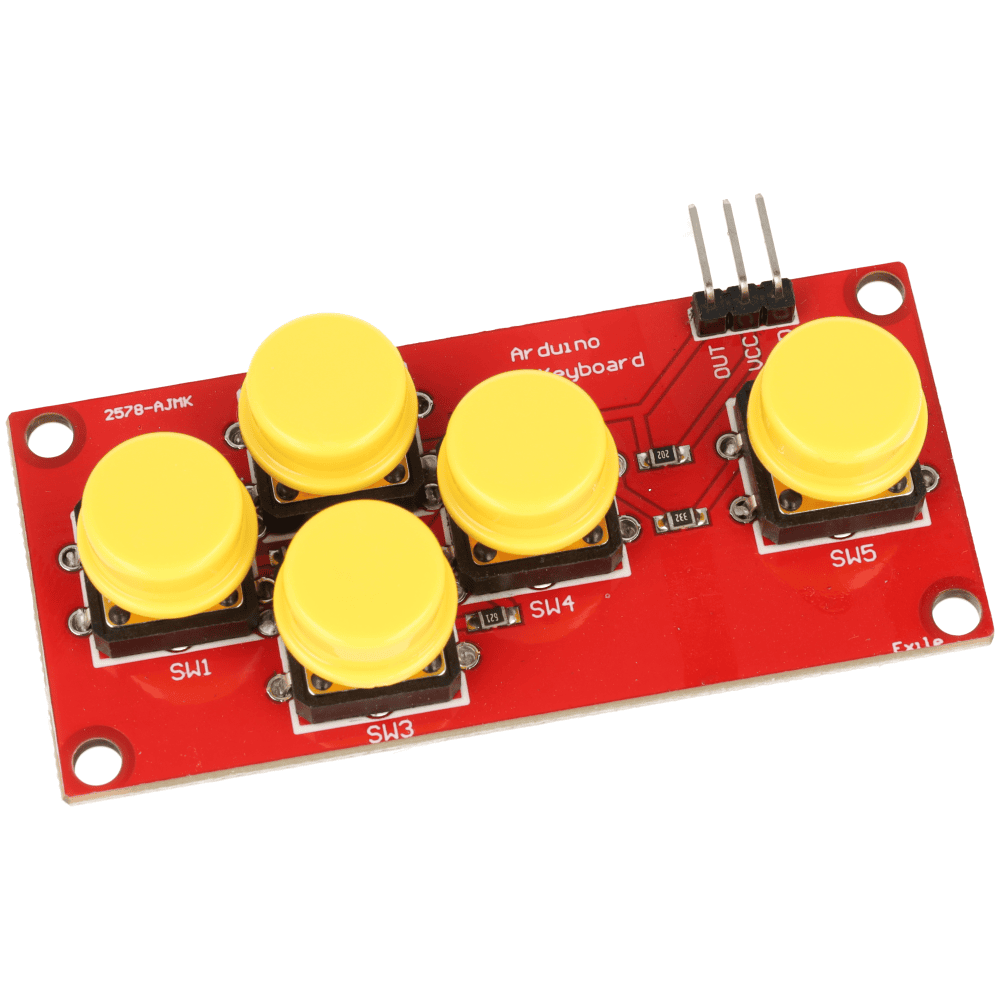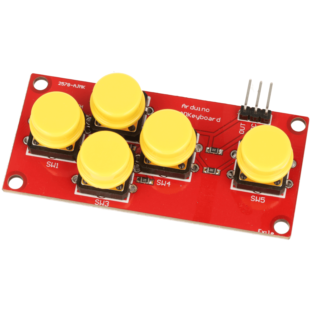 Moduł pozwala obsłużyć 5 przycisków przy użyciu tylko jednego wejścia analogowego. To idealne rozwiązanie w projektach, gdzie liczba dostępnych pinów mikrokontrolera jest ograniczona.