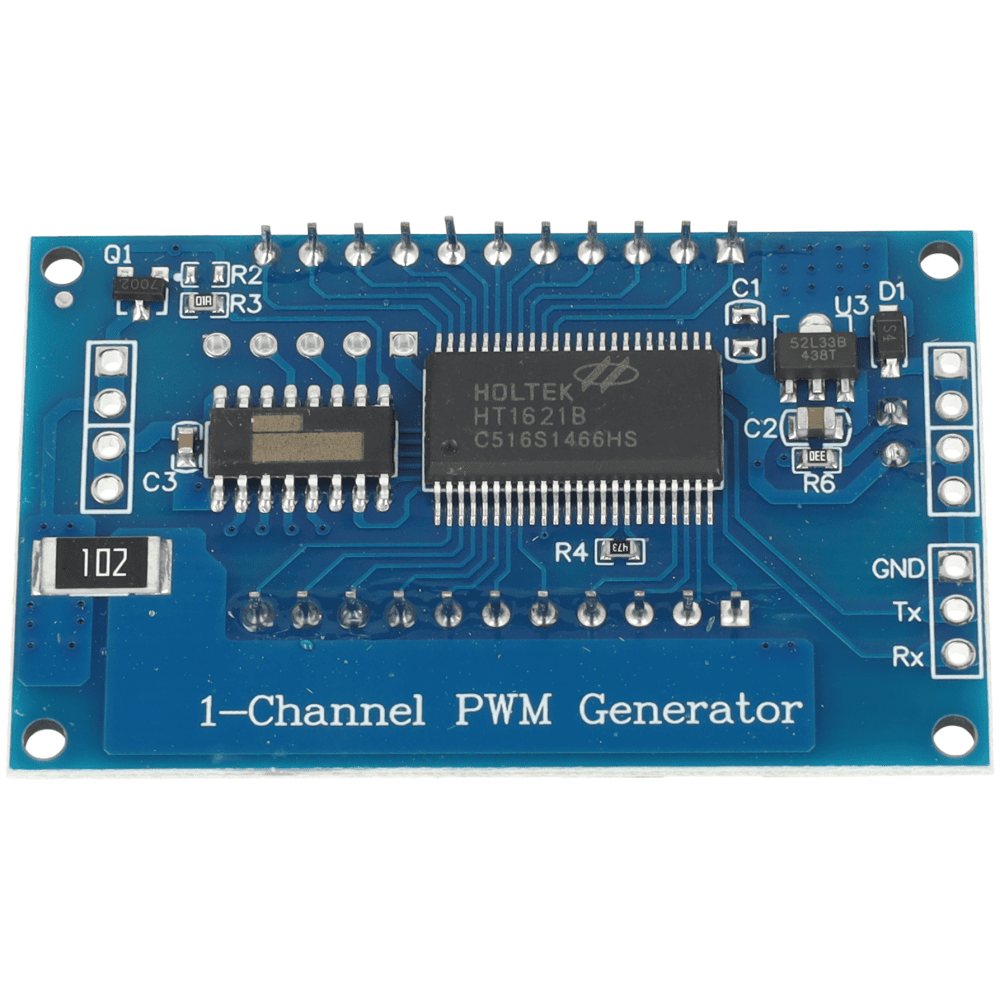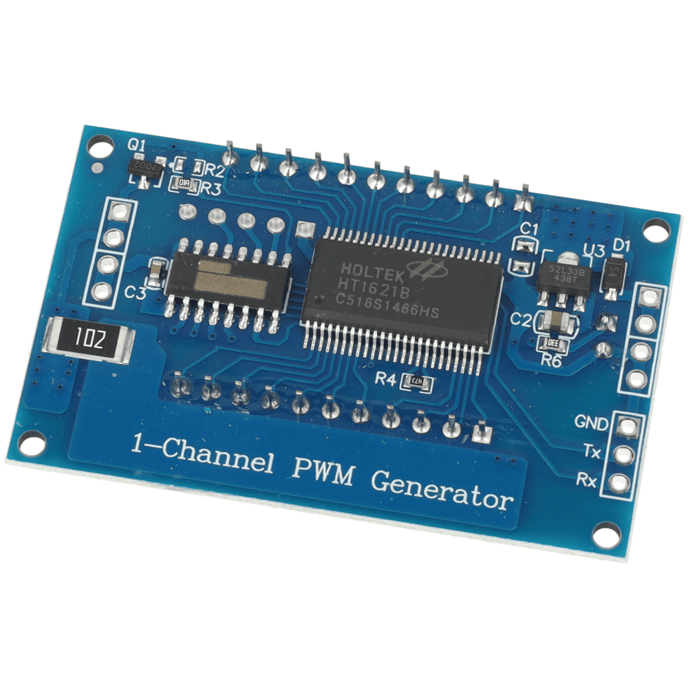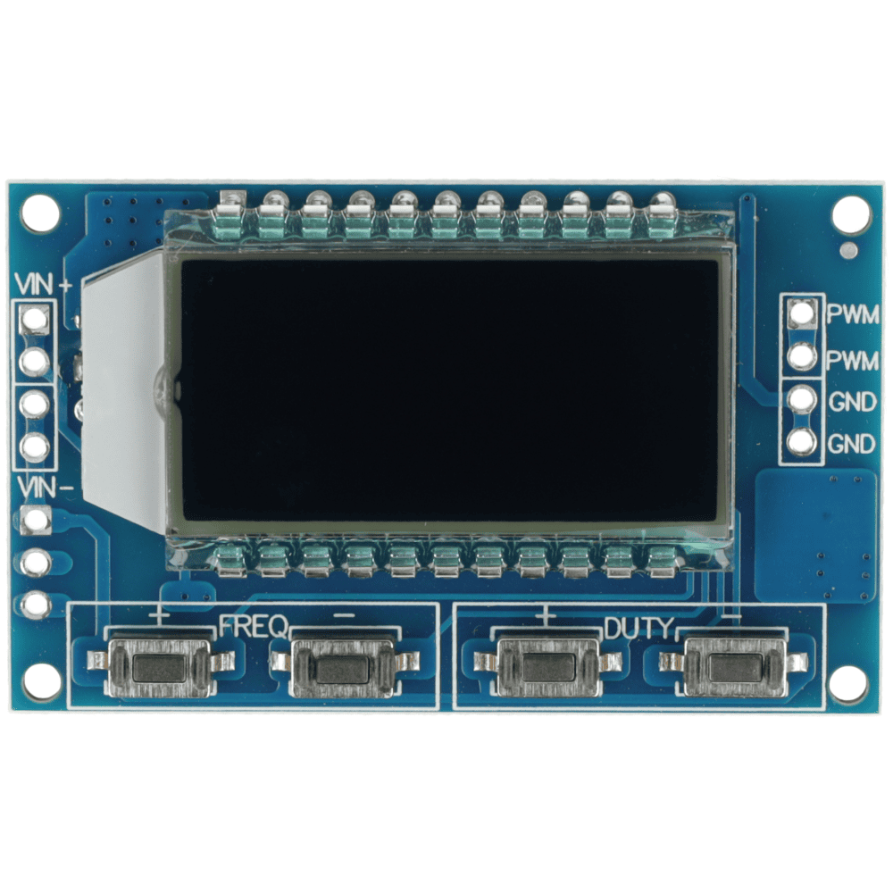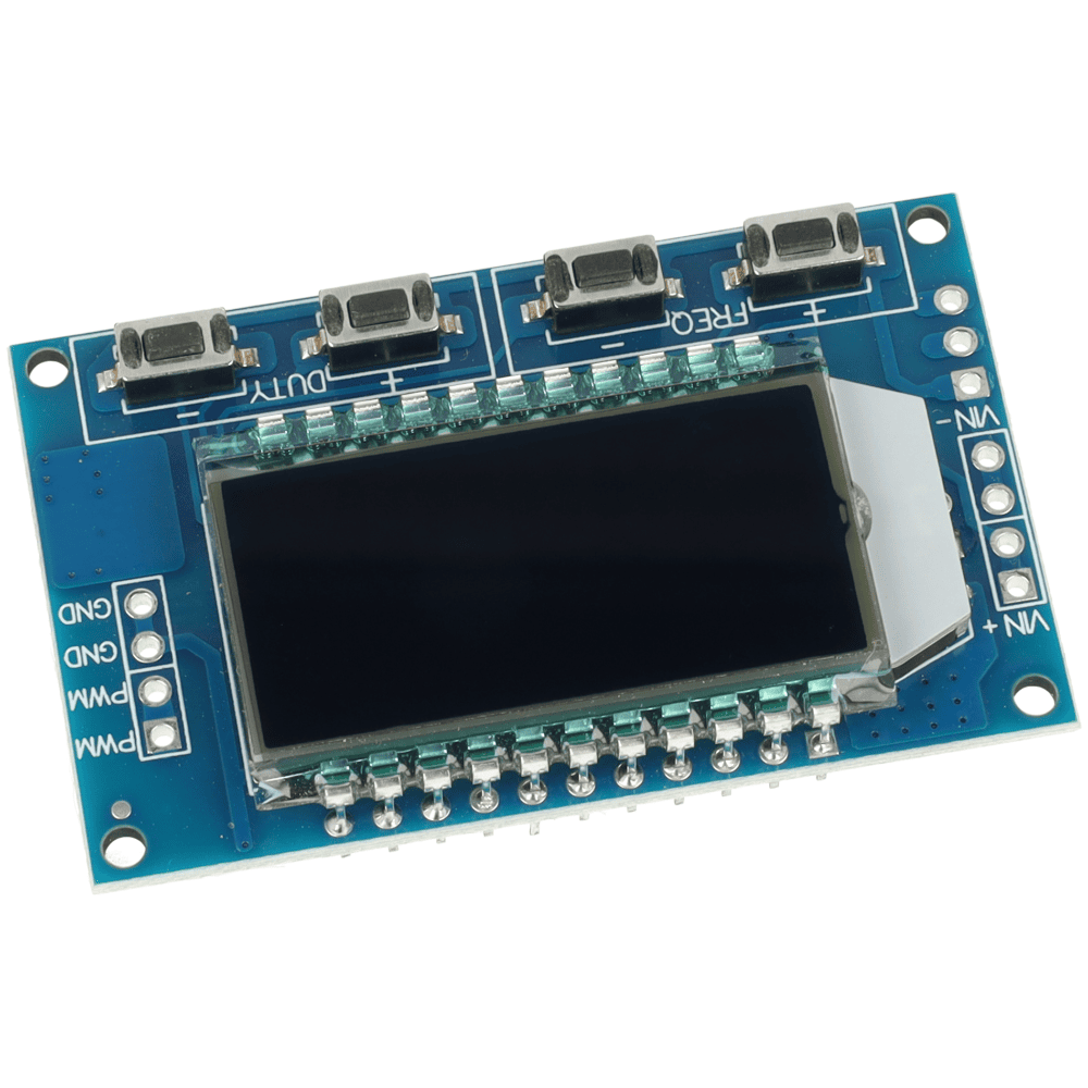 Moduł generatora sygnału PWM 1 Hz – 150 kHz z wyświetlaczem LCD umożliwia regulację częstotliwości w zakresie 1 Hz – 150 kHz oraz wypełnienia sygnału 0 – 100 %. Wyposażony w czytelny wyświetlacz LCD, obsługę przyciskami oraz komunikację szeregową TTL. Zasilanie 3,3 – 30 V, a amplituda wyjściowa PWM równa jest napięciu zasilania.