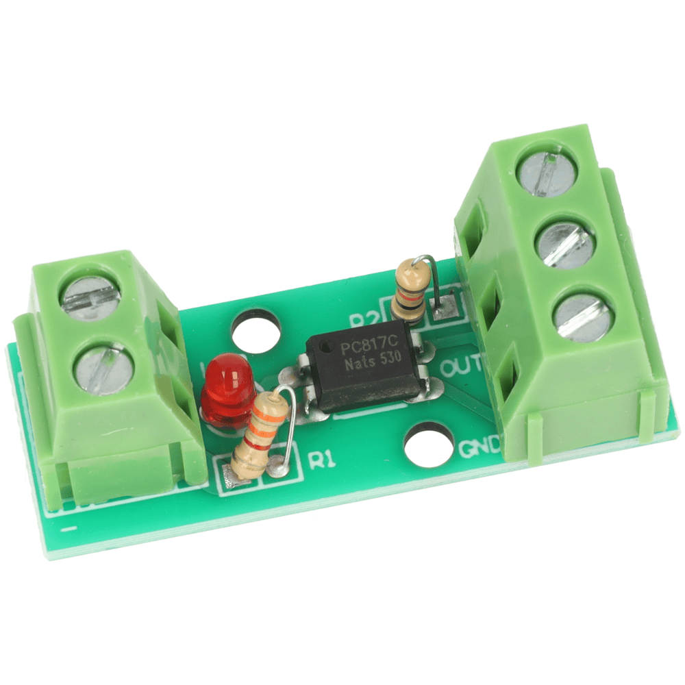 Moduł izolacji optycznej PC817 to kompaktowy element do separacji sygnałów w układach elektronicznych i automatyce.