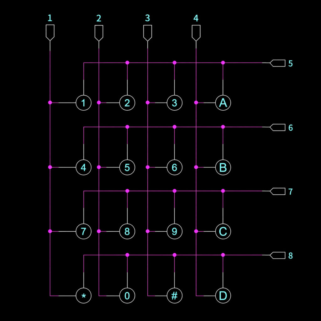 - Matrycowy układ klawiszy 4×4