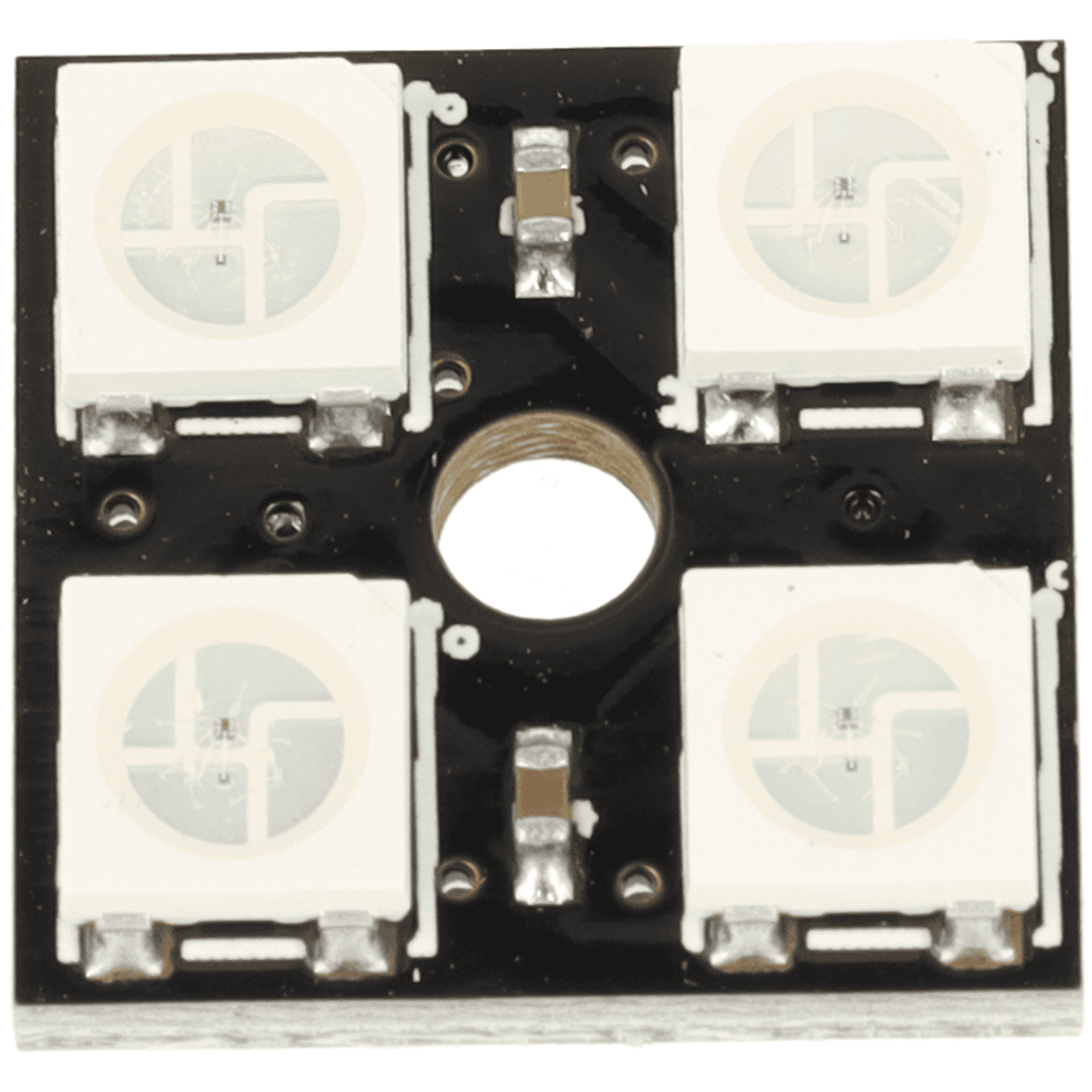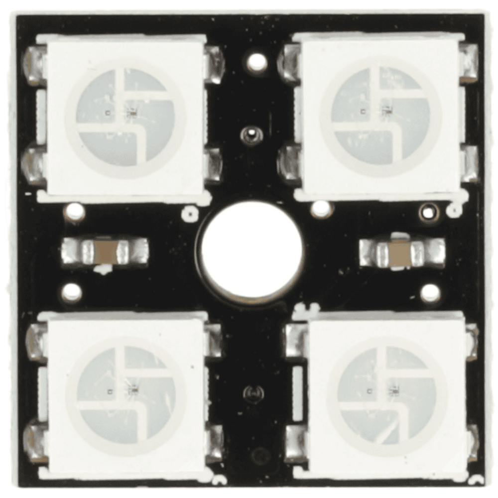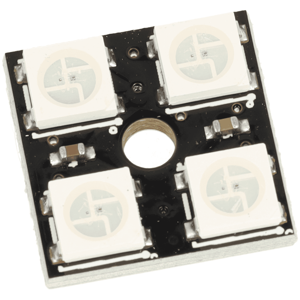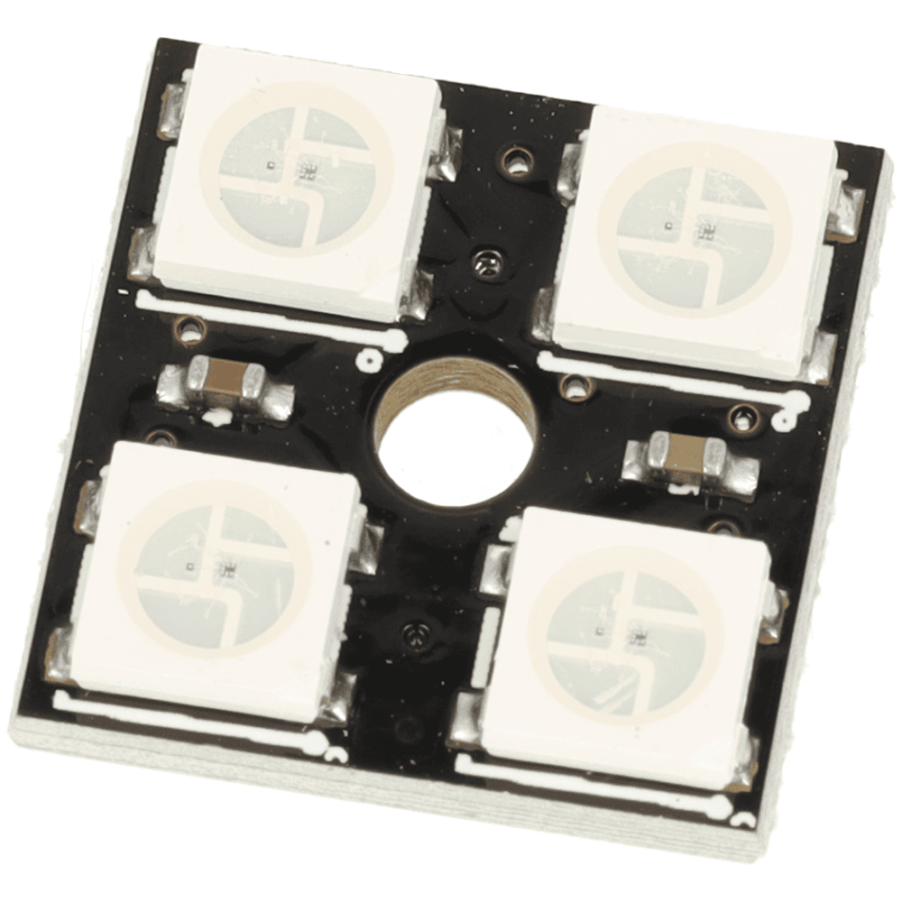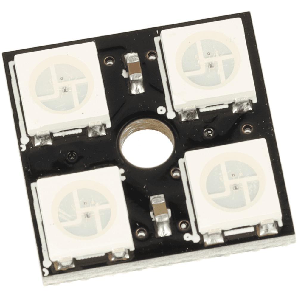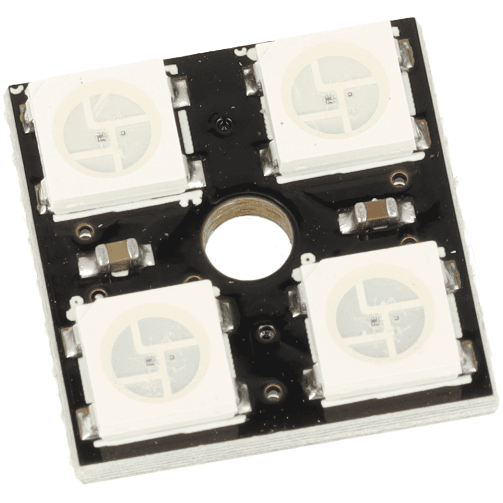 Został wyposażony w 4 adresowalne diody RGB WS2812B, które pozwalają sterować kolorem i jasnością każdego punktu świetlnego niezależnie. Moduł pracuje przy napięciu 5 V DC, obsługuje 16 777 216 kolorów oraz oferuje 256 poziomów jasności na piksel, dzięki czemu świetnie sprawdza się w efektach świetlnych, animacjach i projektach DIY.