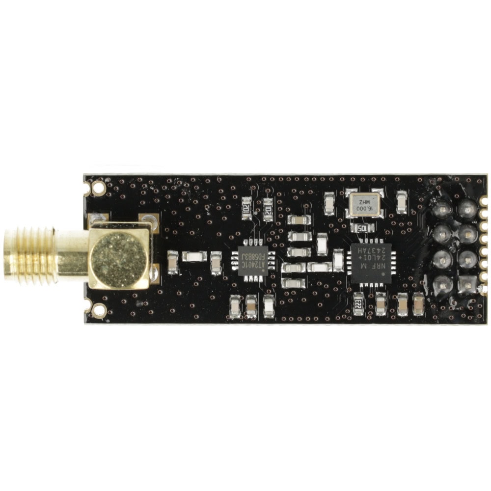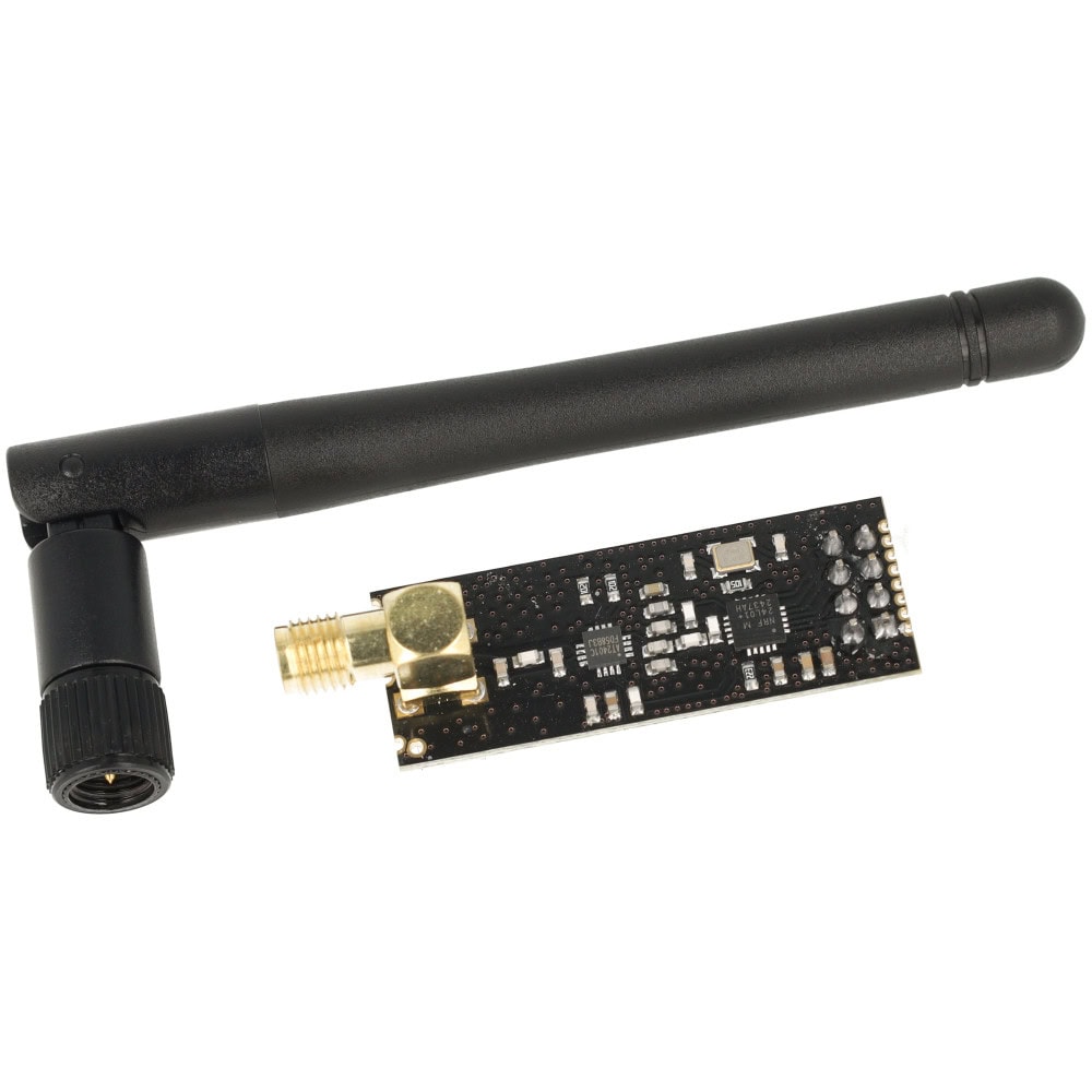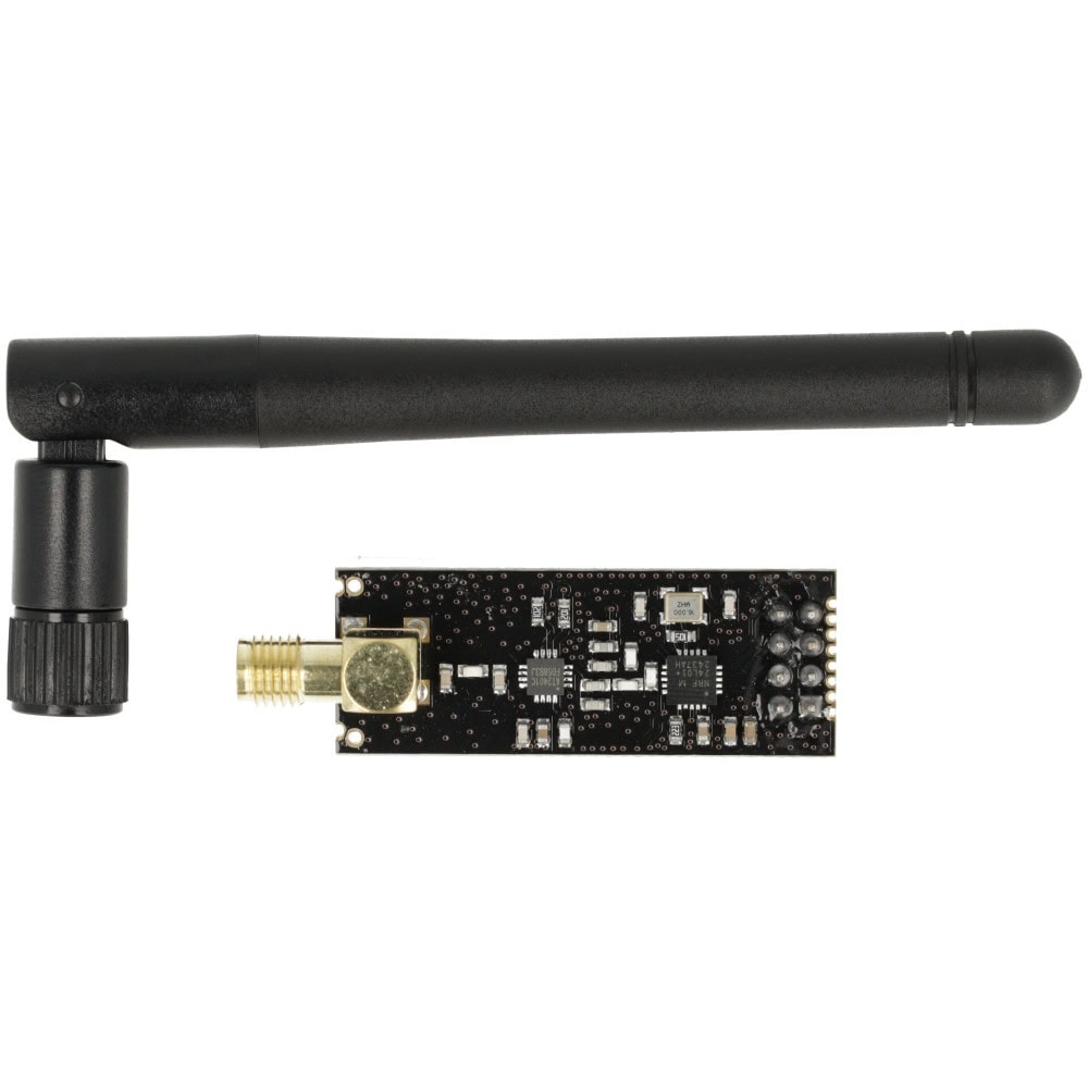 Moduł współpracuje z mikrokontrolerami przez interfejs SPI i charakteryzuje się niskim poborem energii. W zestawie znajduje się antena poprawiająca jakość sygnału.
