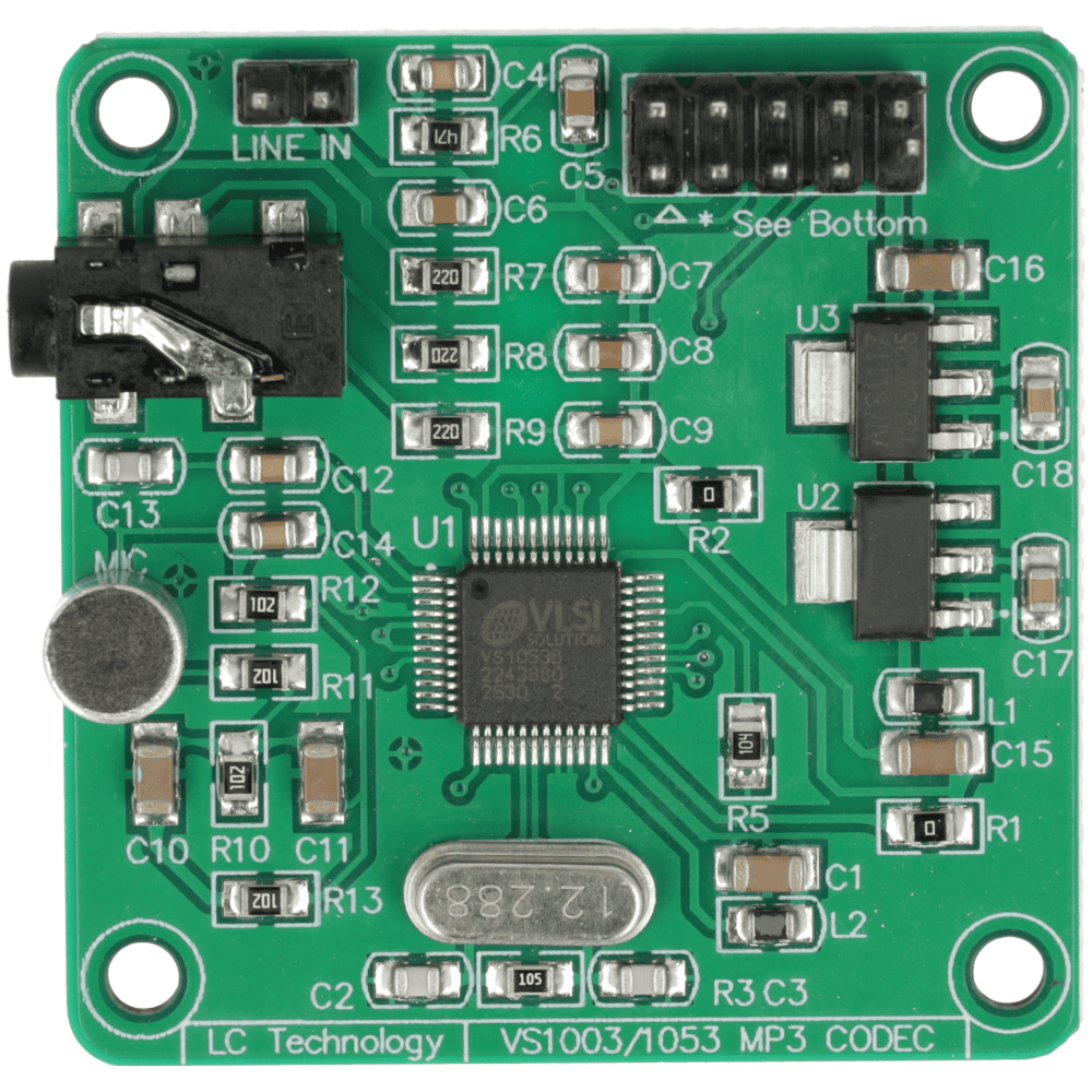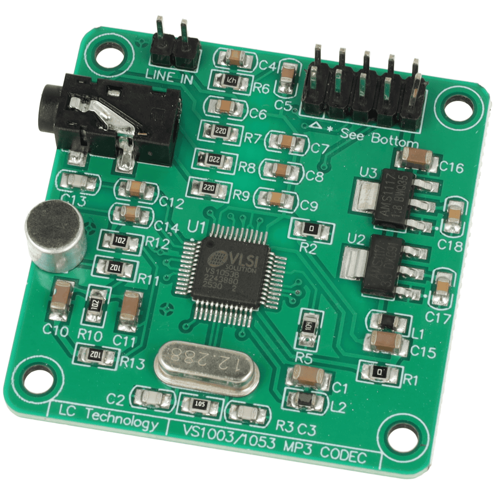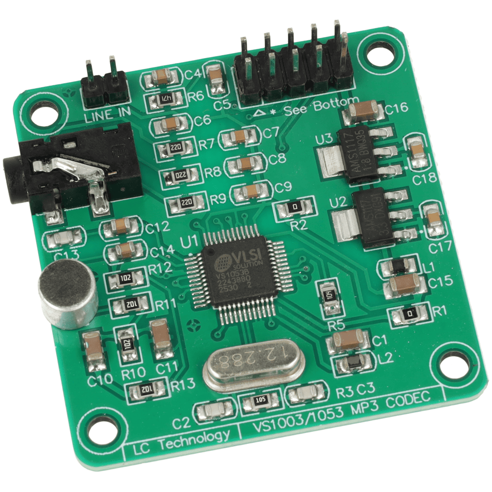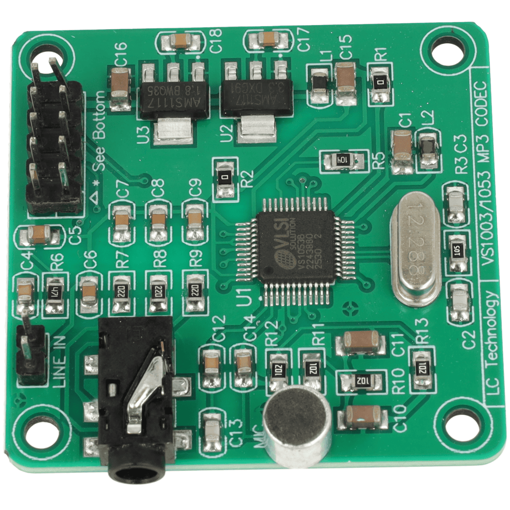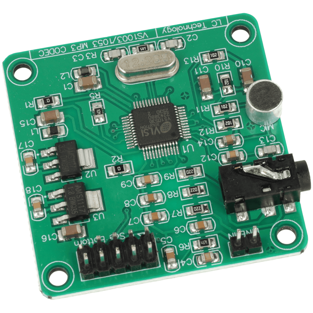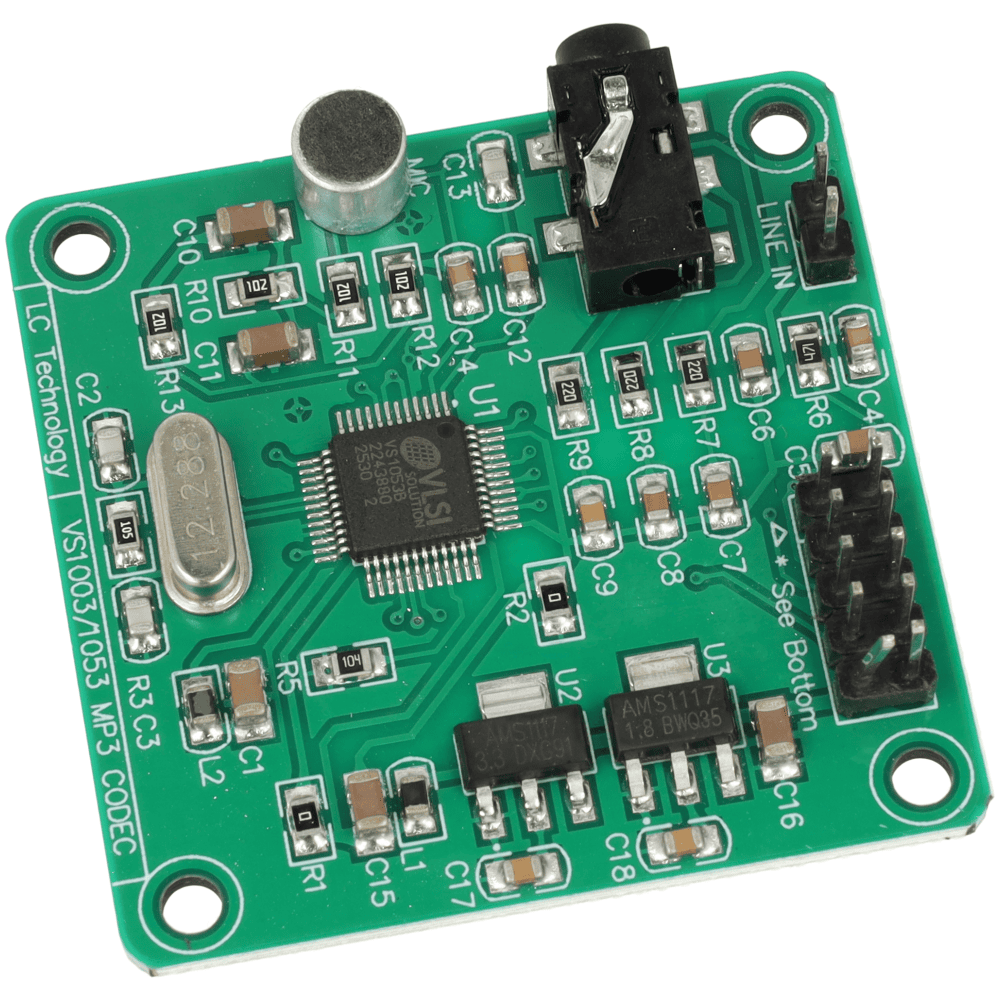 Moduł audio VS1053 to płytka dekodera MP3 z obsługą wielu formatów oraz możliwością nagrywania dźwięku w czasie rzeczywistym.