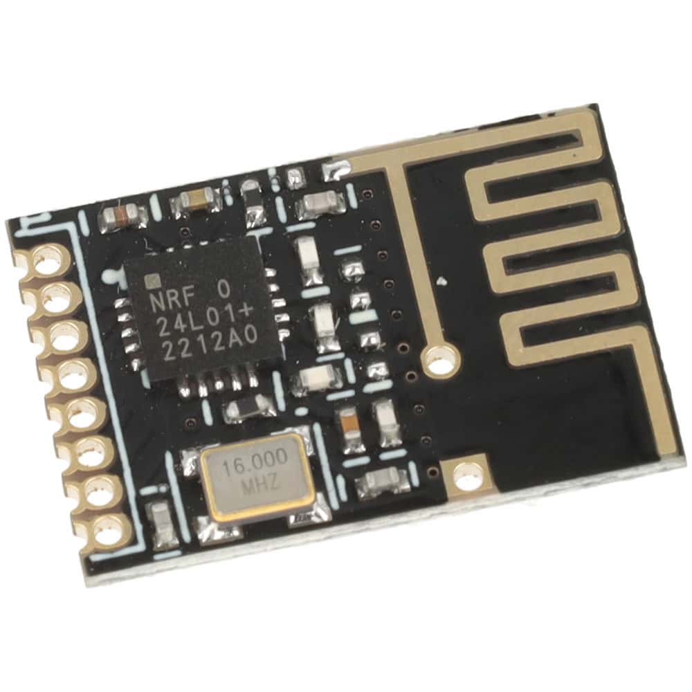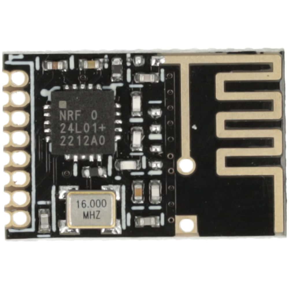 Miniaturowy moduł radiowy z układem nRF24L01+, pracujący w paśmie 2,4 GHz ISM. Dzięki wymiarom 18 × 12 mm i montażowi SMD sprawdzi się w kompaktowych projektach. Obsługuje transmisję do 2 Mb/s, posiada interfejs SPI i wbudowaną antenę PCB.