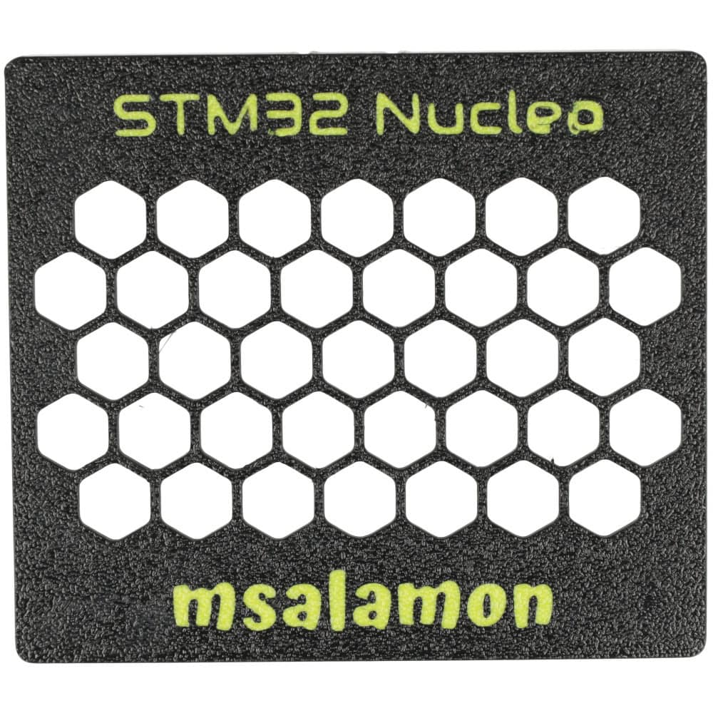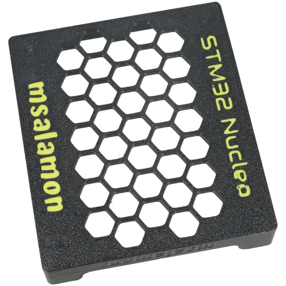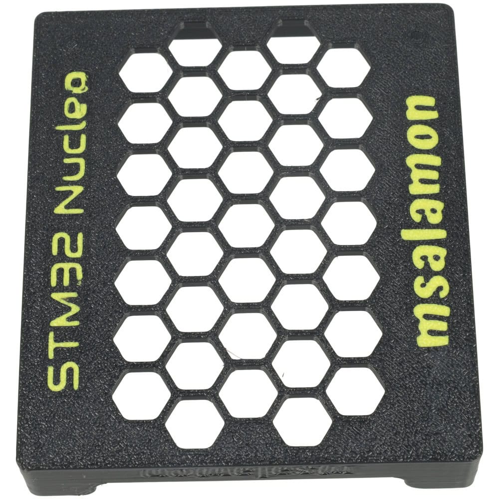 Projektowana specjalnie dla płytek STM32 Nucleo-64, z wycięciami na USB oraz złącze zasilania co pozwala na pełne korzystanie z funkcjonalności bez konieczności demontażu.