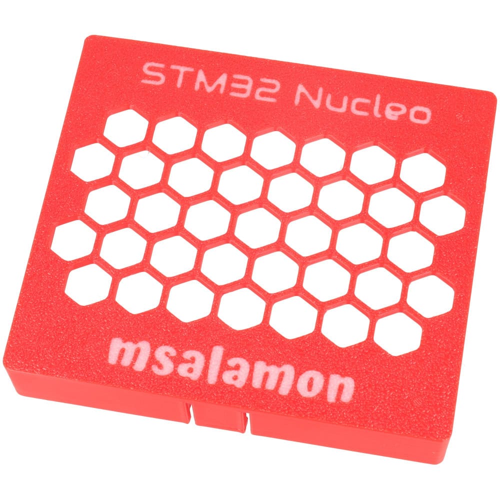 Projektowana specjalnie dla płytek STM32 Nucleo-64, z wycięciami na USB oraz złącze zasilania co pozwala na pełne korzystanie z funkcjonalności bez konieczności demontażu.