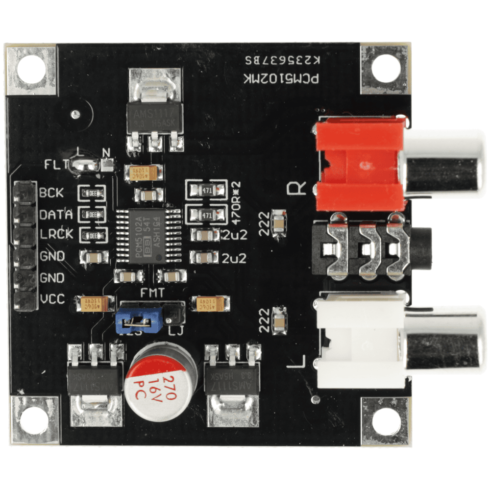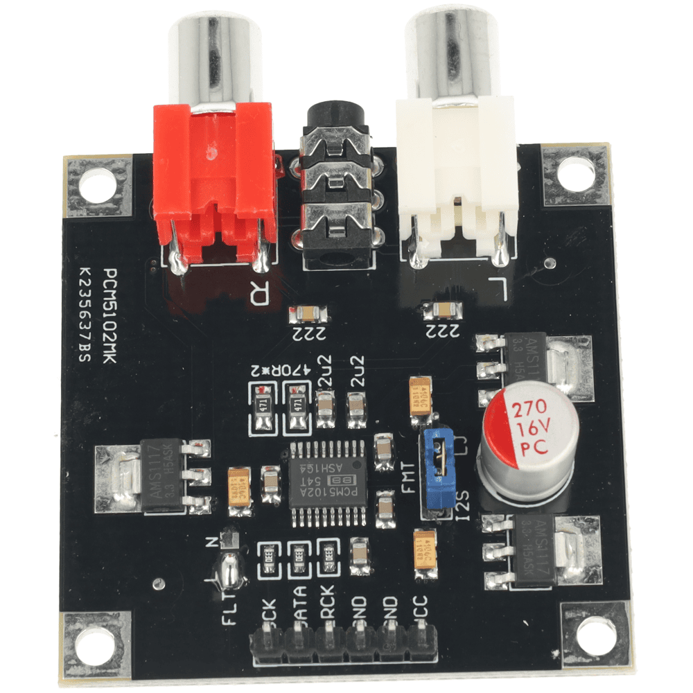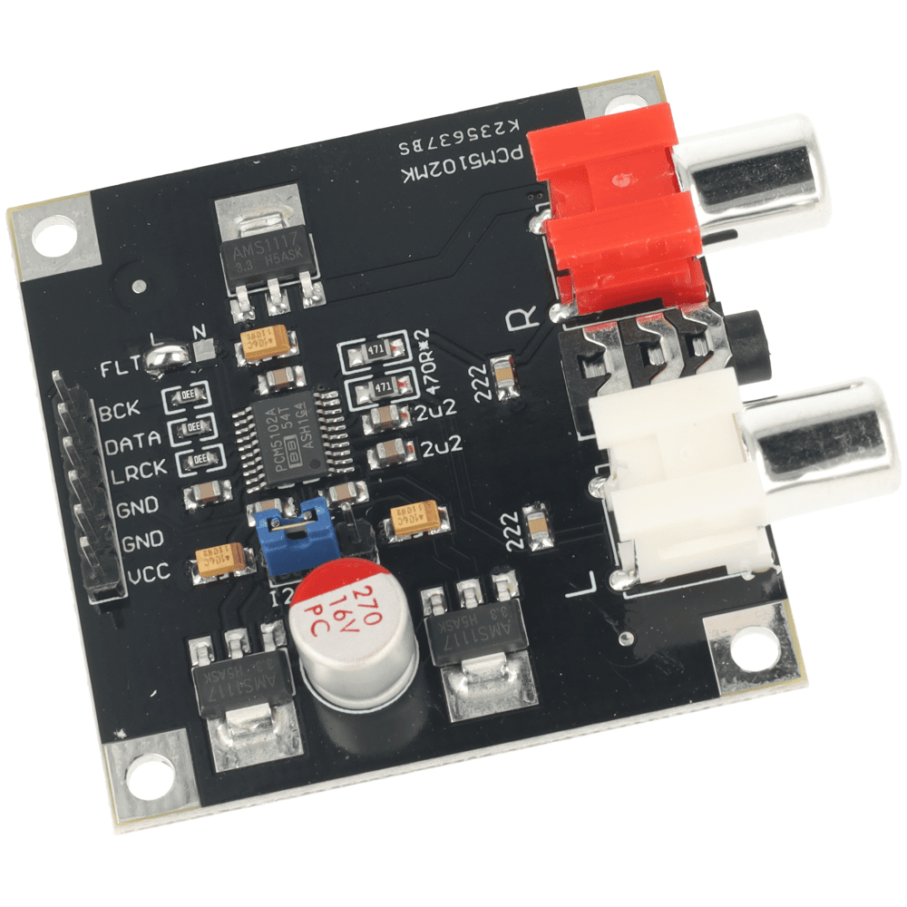 PCM5102 DAC Decoder I2S to wysokiej jakości moduł przetwornika cyfrowo-analogowego oparty na układzie PCM5102, obsługujący sygnał audio do 32 bit / 384 kHz.