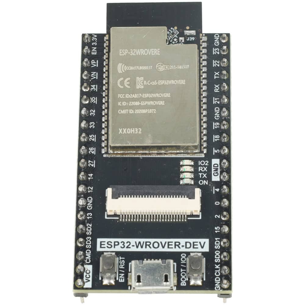 Ilość pinów GPIO jest duża jak na te rozmiary. Wyprowadzonych pinów IO na krawędź płytki jest dokładnie 28. Do ESP32-WROVER-E podłączysz sporą liczbę zewnętrznych modułów. Łączna liczba pinów płytki to 32.