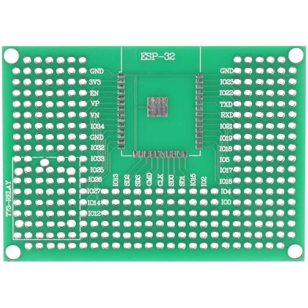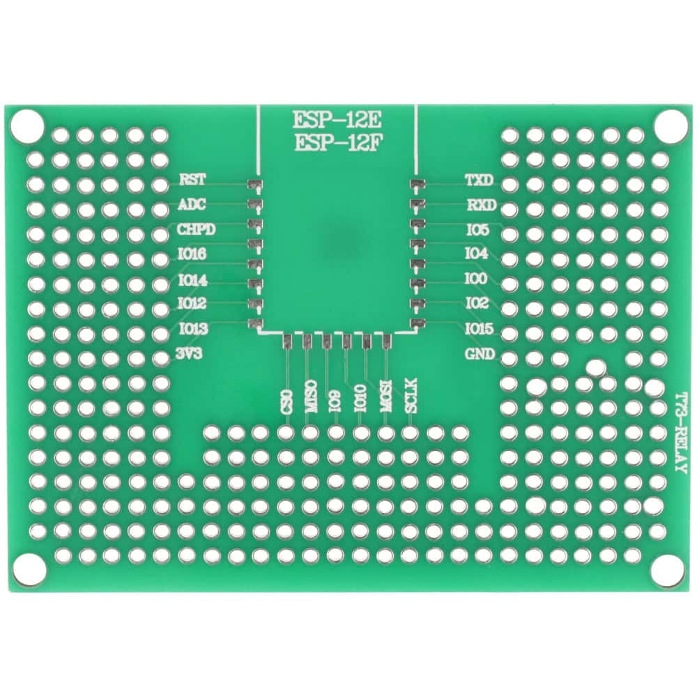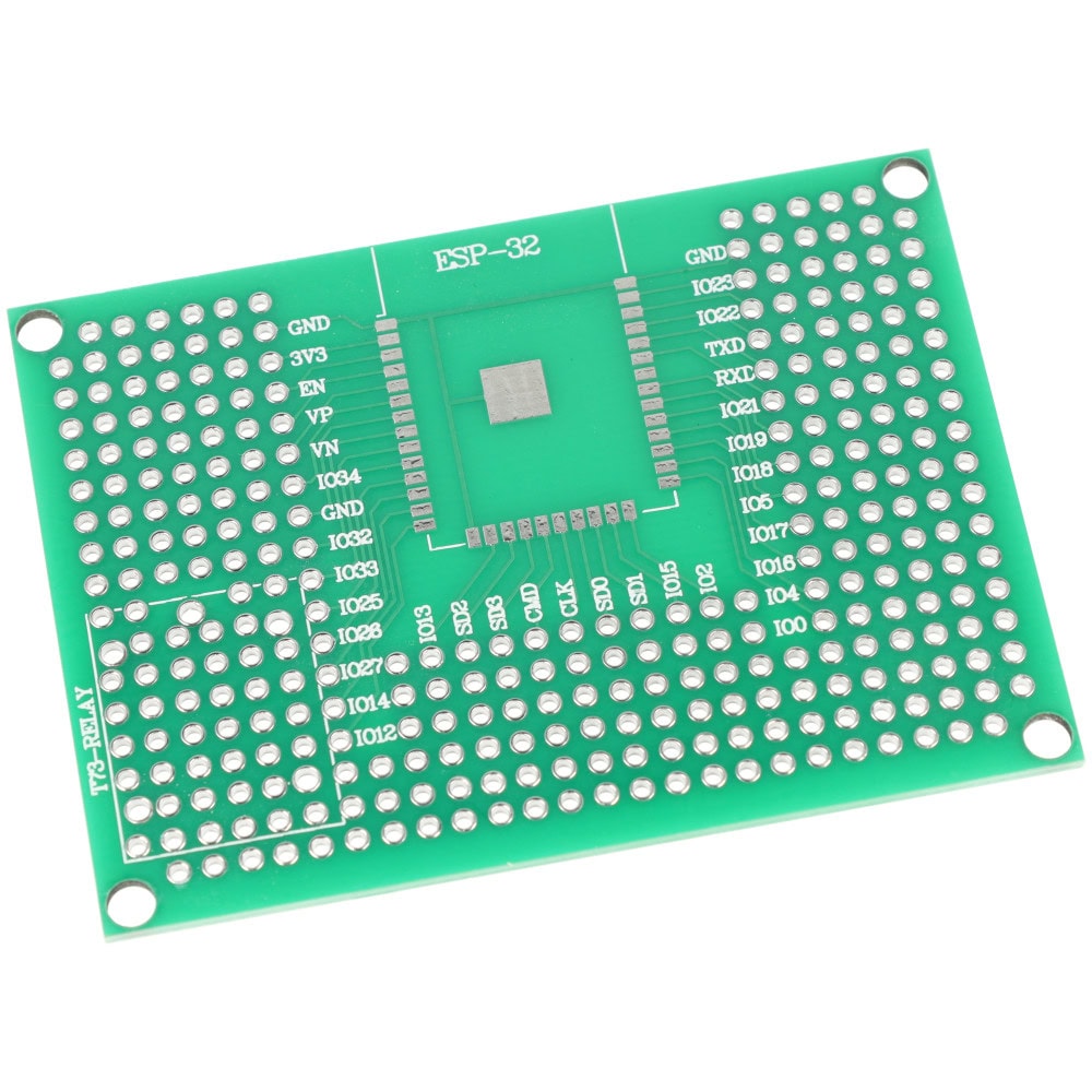 🕳️ Ilość otworów: ok. 260 sztuk 🧾 Oznaczenia pinów: zgodne z modułami ESP-12 i ESP32 ⚡ Dedykowane miejsce na przekaźnik: tak 🧲 Rozstaw padów: 2,54 mm 🛠️ Typ płytki: Dwustronna z metalizacją otworów 🎨 Kolor: zielony 📏 Wymiary: 7 × 5 cm ⚖️ Waga: 9,91 g