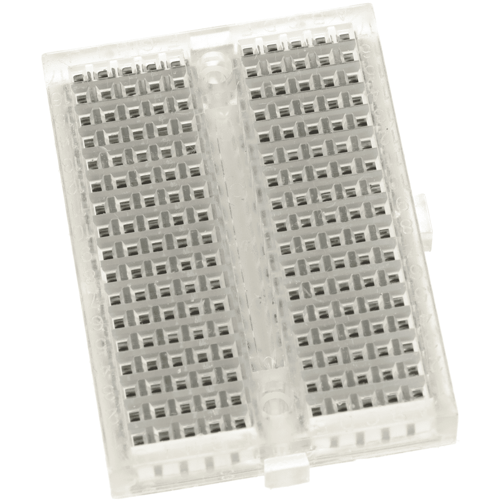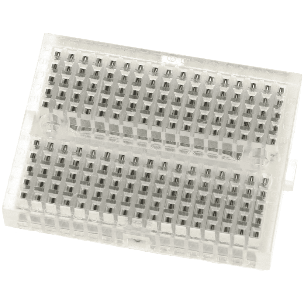 🔢 Typ: Miniaturowa płytka prototypowa 🧩 Ilość pól: 170 📏 Wymiary: 45 mm × 34 mm × 8,5 mm 🎨 Kolor: Przezroczysty ⚖️ Waga: 13,5 g