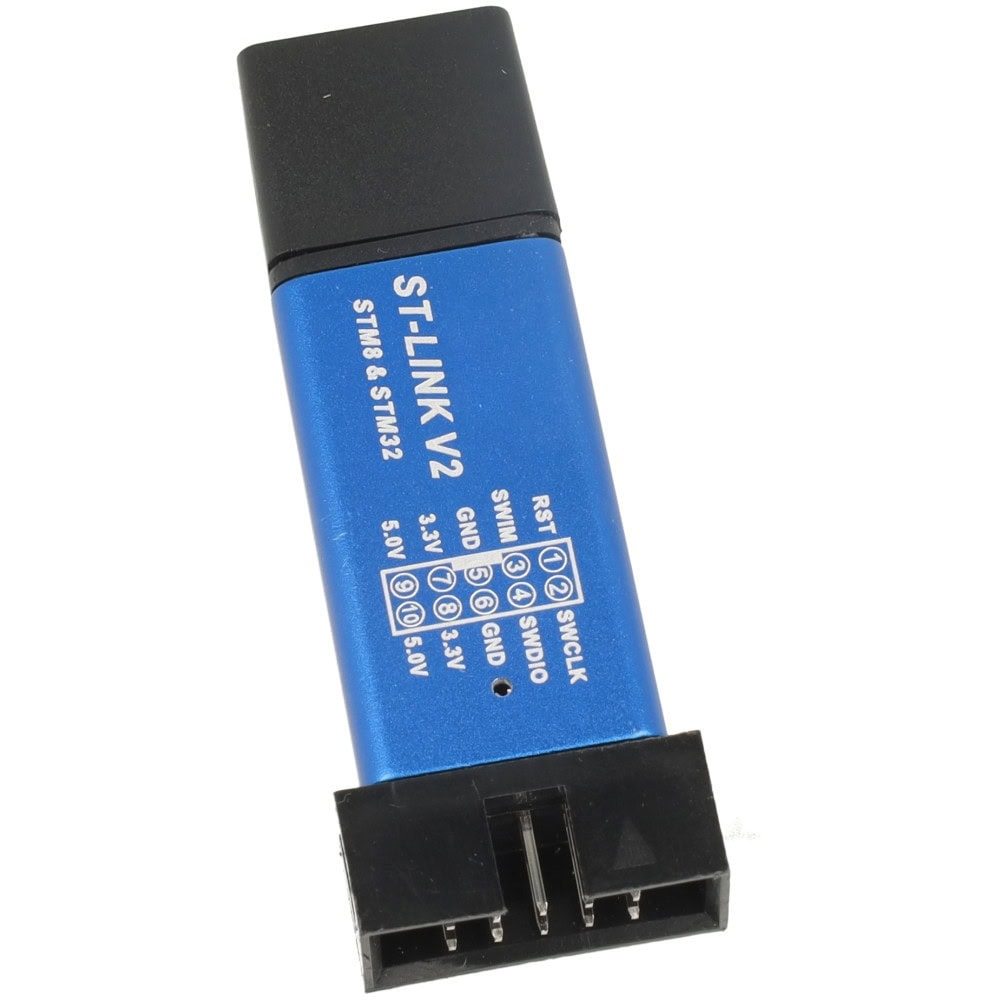 Programator ST-Link V2 w kolorze niebieskim to kompaktowe i funkcjonalne narzędzie do programowania i debugowania mikrokontrolerów STM8 oraz STM32. Jest to progamator zgodny z ST-Link V2 pochodzący z Chin. Nie jest to oryginalny produkt firmy STMicroelectronics.