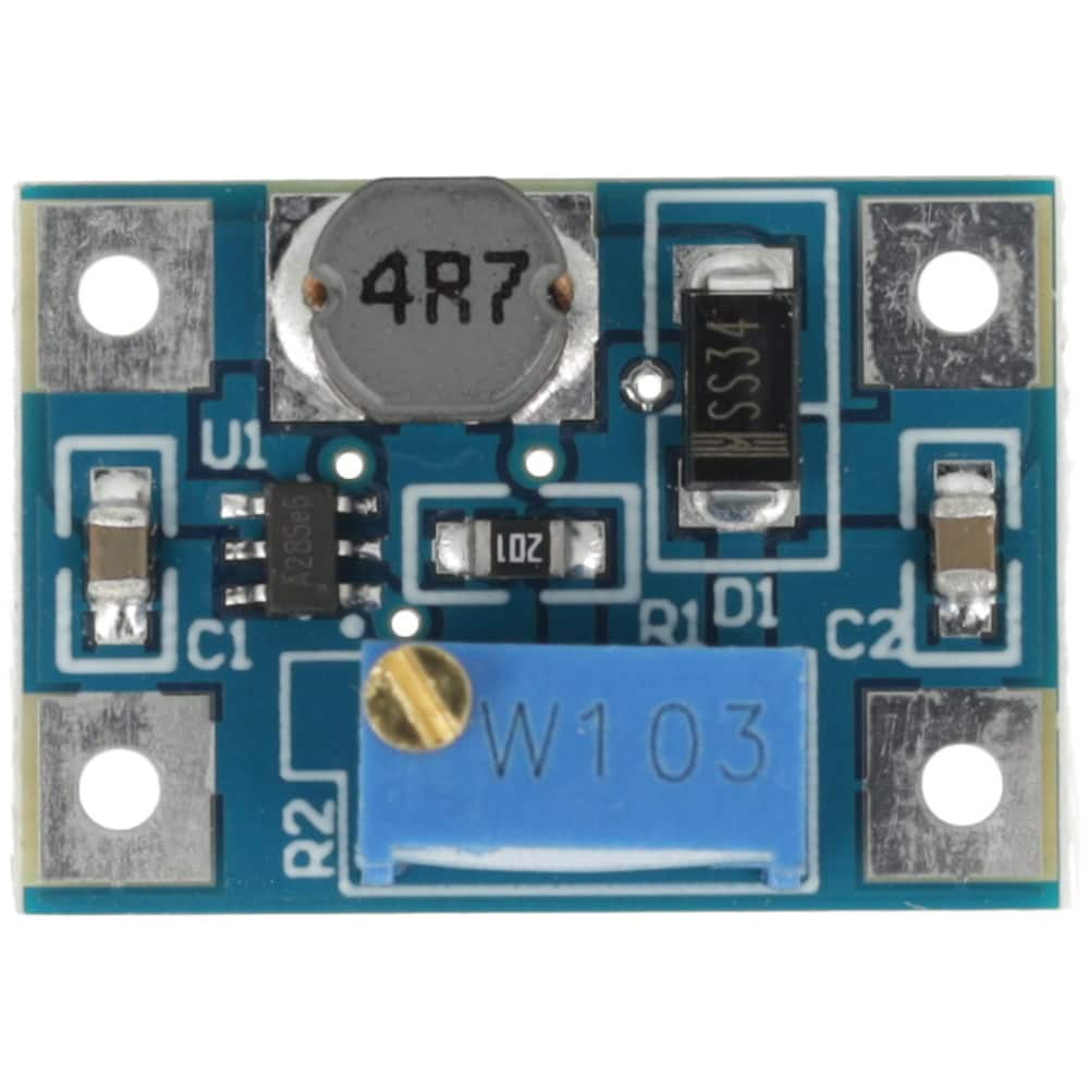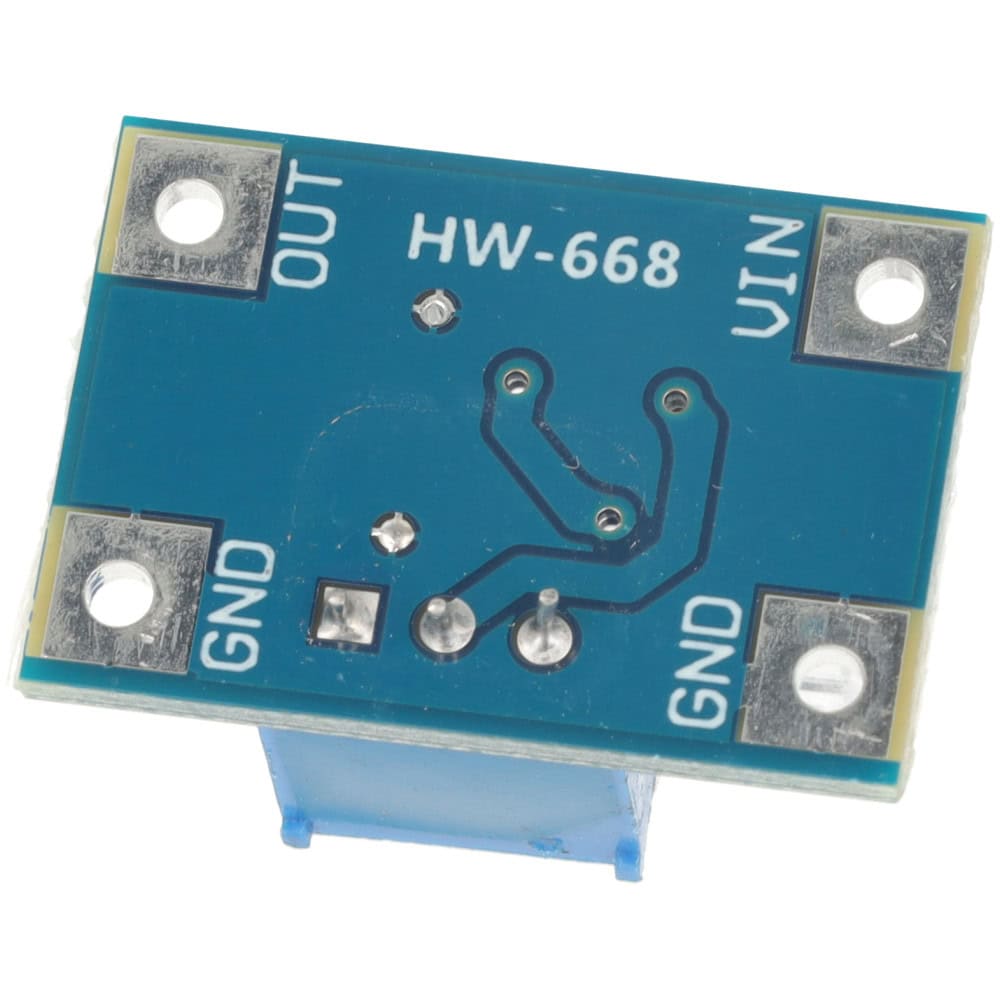 Przetwornica step-up SX1308 to niewielki, ale bardzo wydajny moduł konwertujący napięcie wejściowe z zakresu 2–24 V na regulowane napięcie wyjściowe 2–28 V.