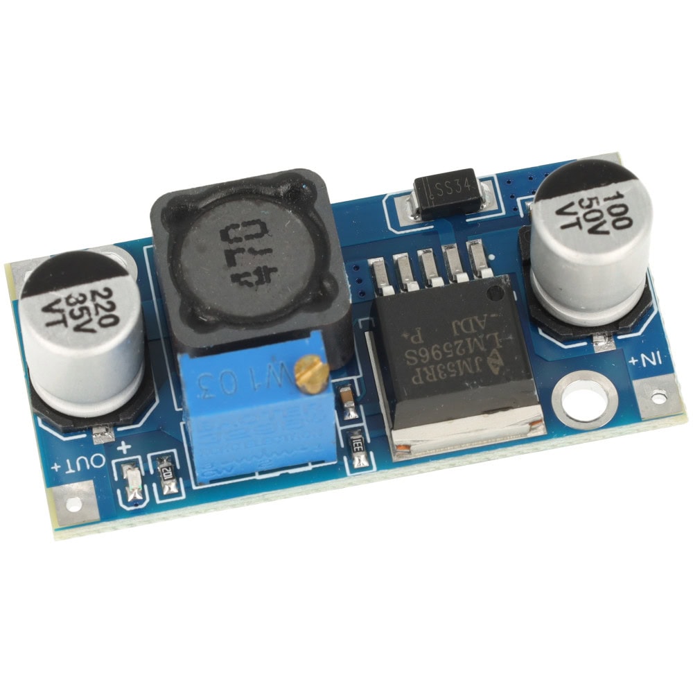 Moduł oparty na układzie LM2596 to niezawodna przetwornica step-down (buck), pozwalająca na obniżenie napięcia stałego w zakresie od 3 V do 35 V na wejściu oraz od 1,5 V do 30 V na wyjściu.