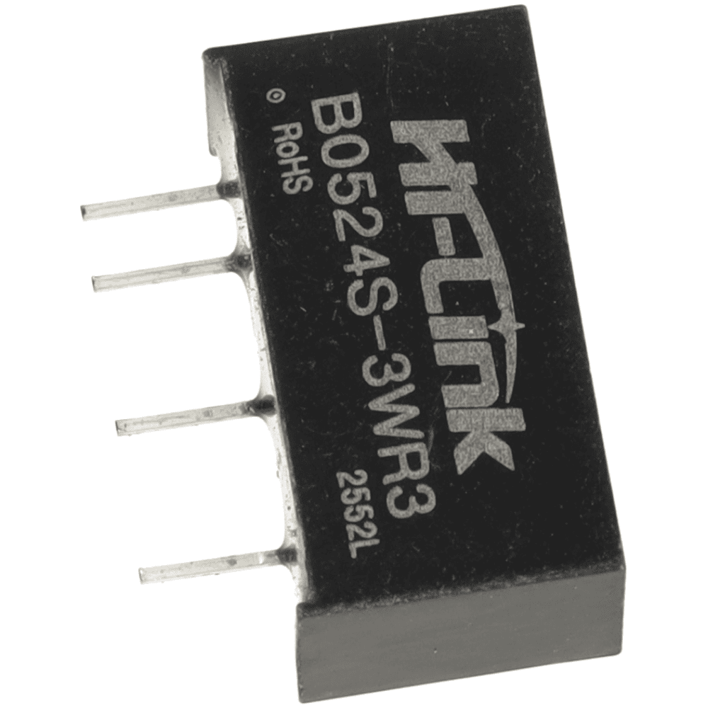 Przetwornica Hi-Link B0524S-3WR3 to kompaktowy moduł DC-DC, który przetwarza napięcie wejściowe 5 V DC na izolowane napięcie wyjściowe 24 V DC.