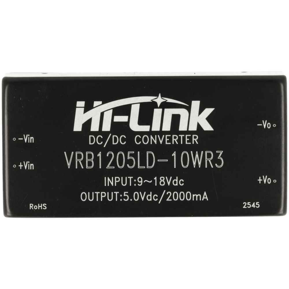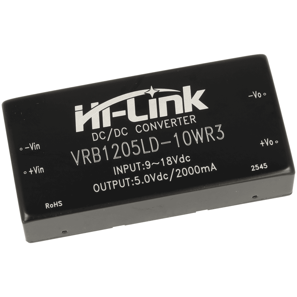 Przetwornica Hi-Link VRB1205LD-10WR3 to kompaktowy moduł DC-DC, który przetwarza napięcie wejściowe 9 – 18 V DC na izolowane napięcie wyjściowe 5 V DC.