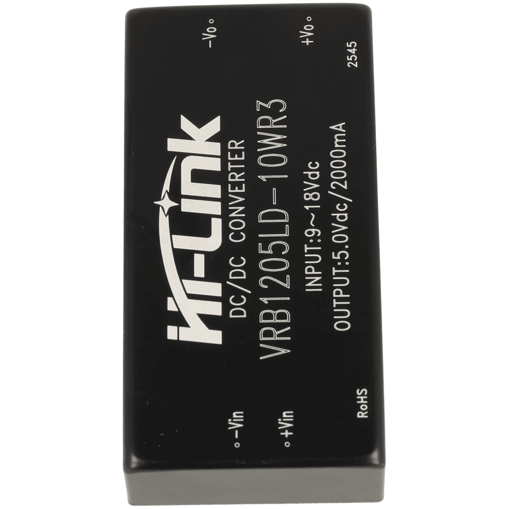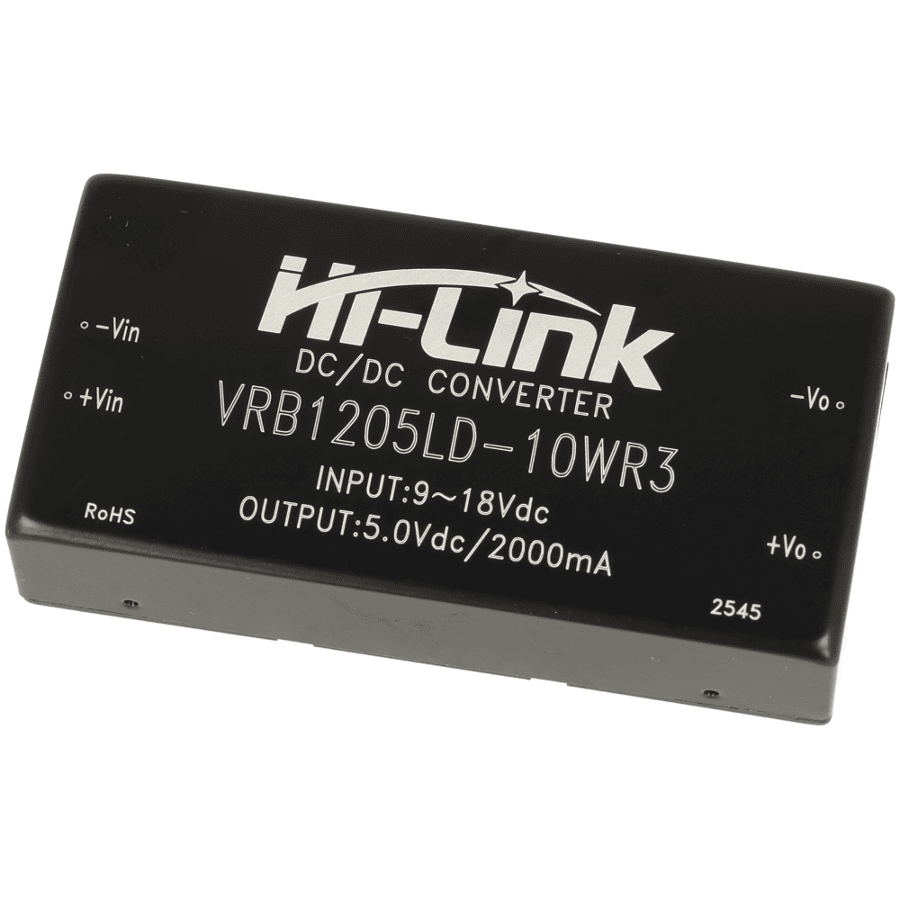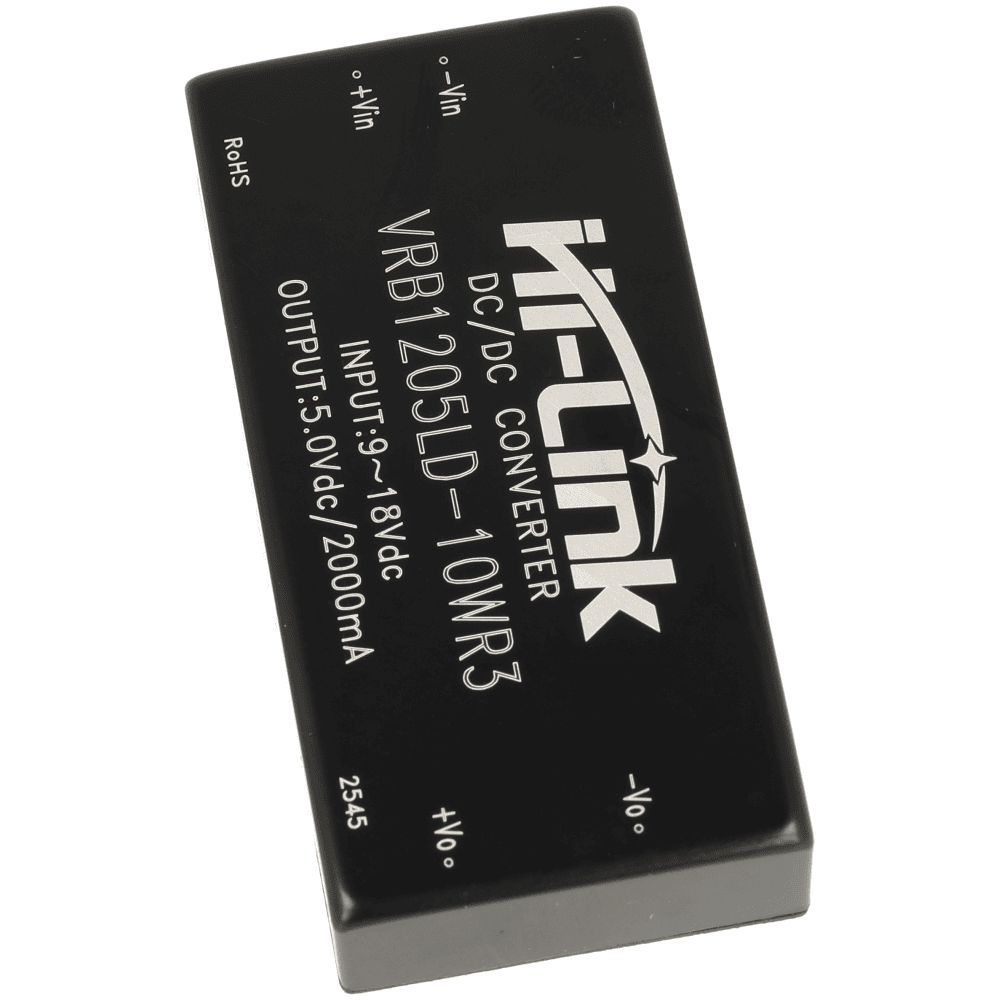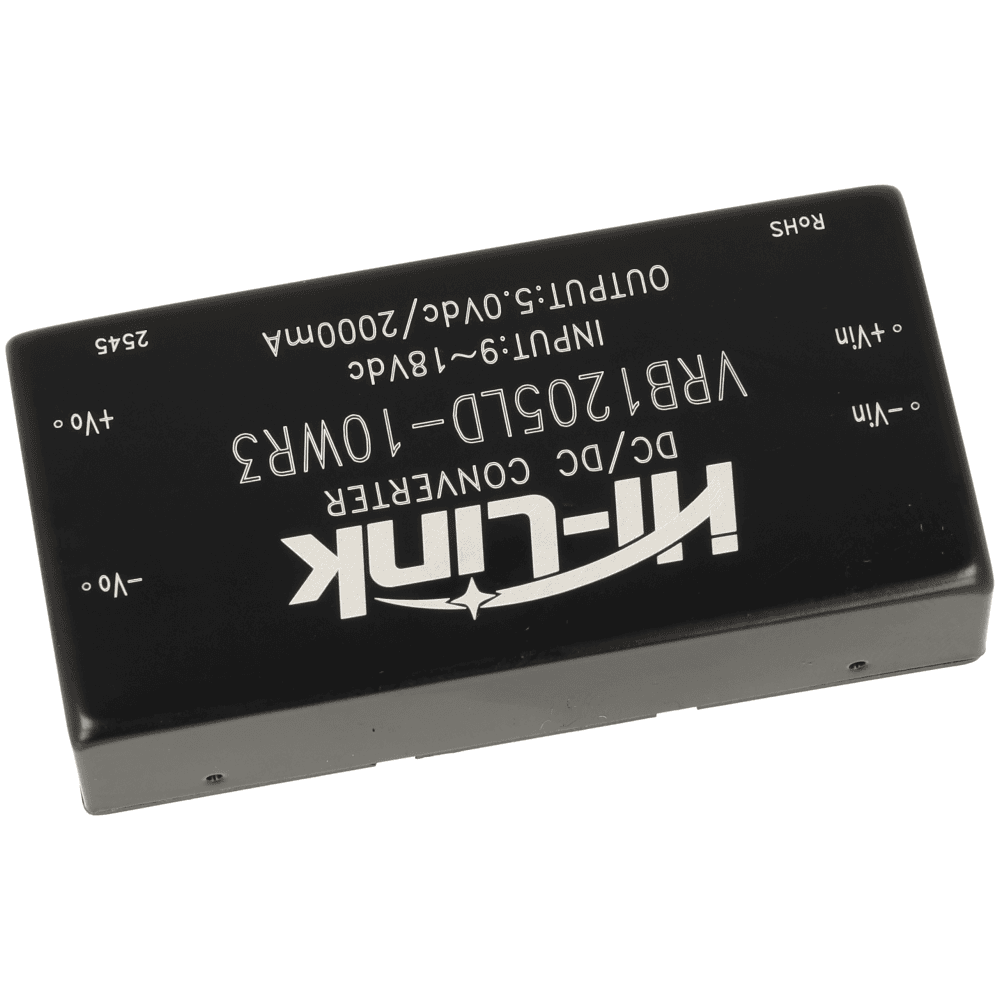 Przetwornica Hi-Link VRB1205LD-10WR3 to kompaktowy moduł DC-DC, który przetwarza napięcie wejściowe 9 – 18 V DC na izolowane napięcie wyjściowe 5 V DC.