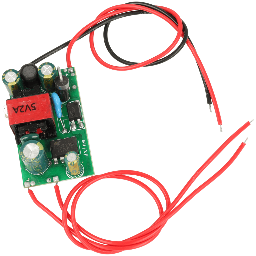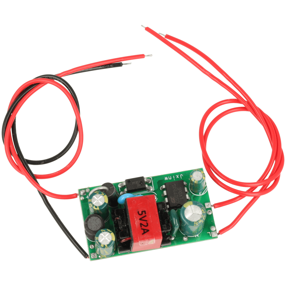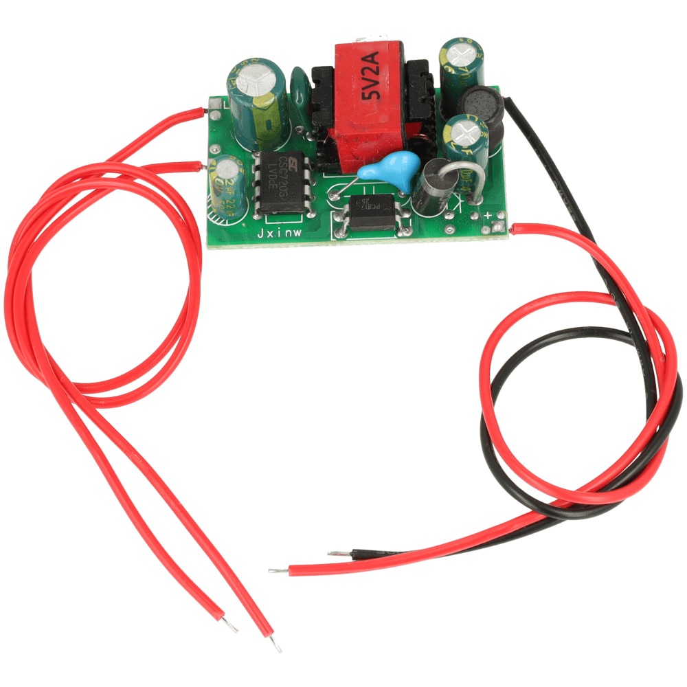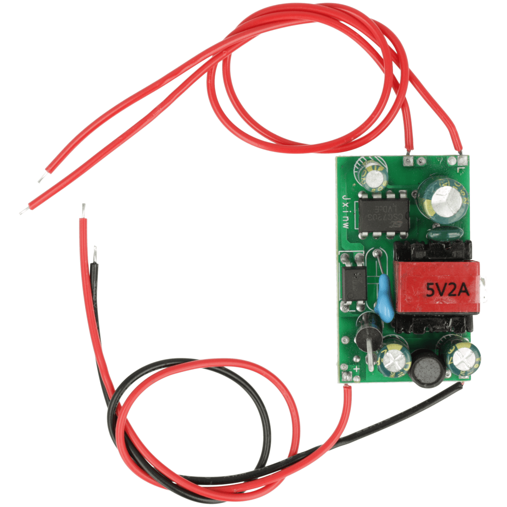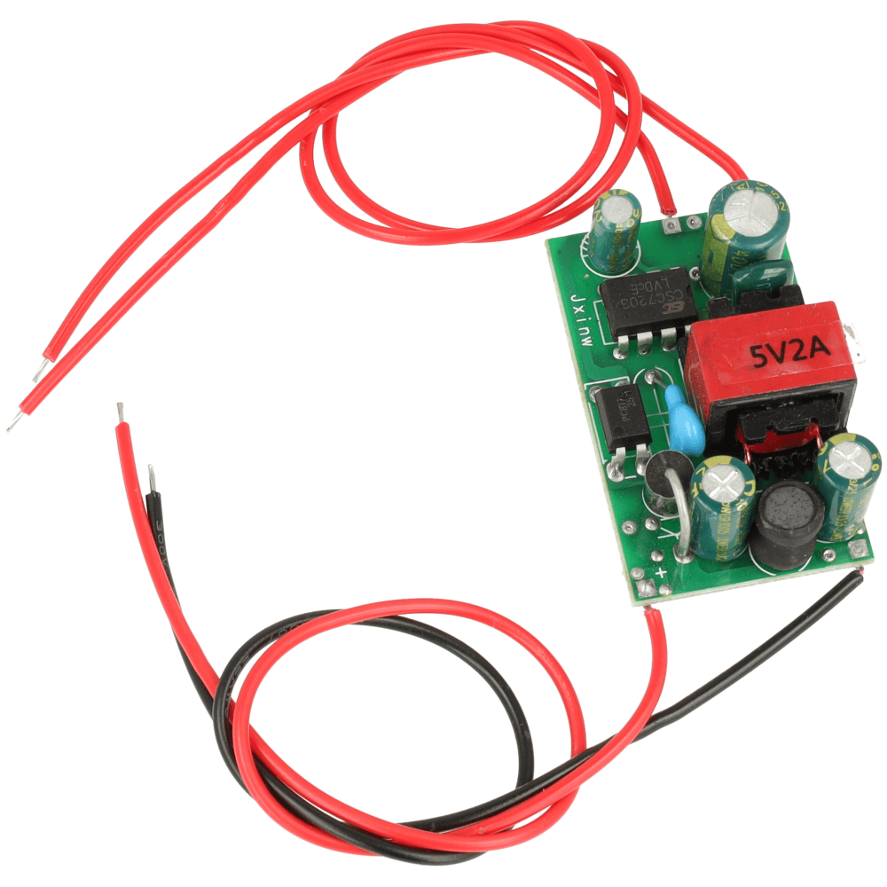 Przetwornica napięcia 230 V AC -> 5 V DC 2 A to kompaktowy moduł zasilający do obniżania napięcia sieciowego 230 V AC do stabilnego 5 V DC. Oferuje maksymalny prąd wyjściowy 2 A oraz moc 10 W, dzięki czemu nadaje się do zasilania niewielkich układów elektronicznych, automatyki i projektów DIY. Dzięki wymiarom 43 x 25 mm można ją łatwo zamontować w różnych urządzeniach i obudowach.