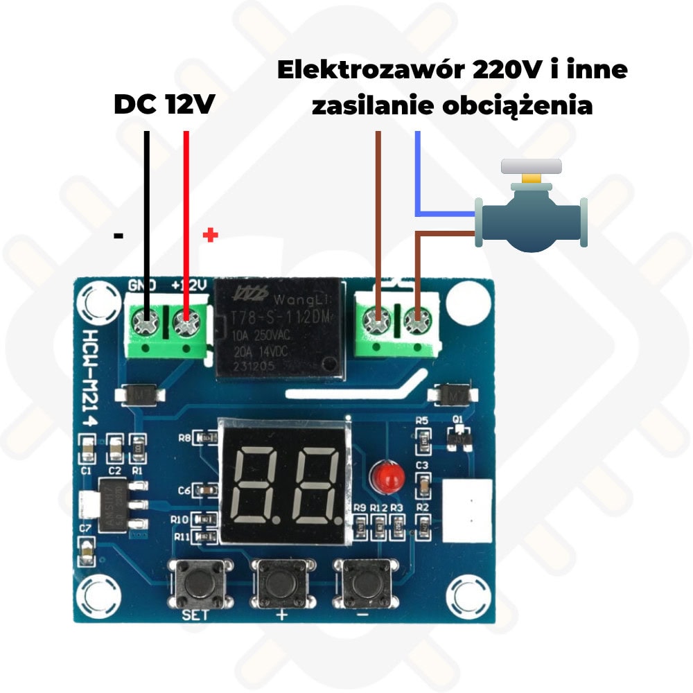 Sterownik podlewania XH-M214 z czujnikiem wilgotności gleby DC 12V 10A