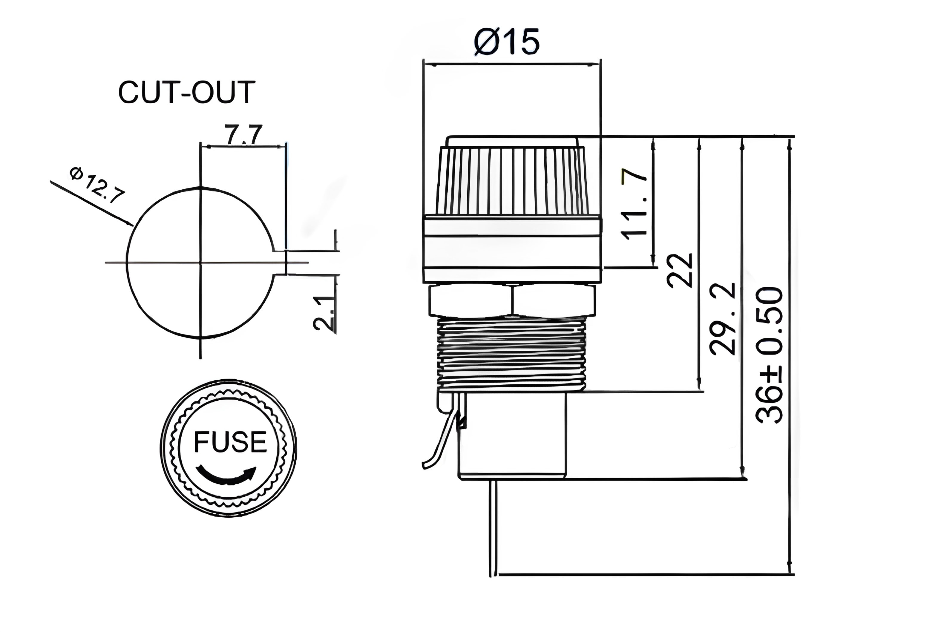 Uchwyt bezpiecznika z nakrętką – Wyposażony w nakrętkę, która zapewnia stabilność i niezawodność montażu w panelach oraz obudowach.
