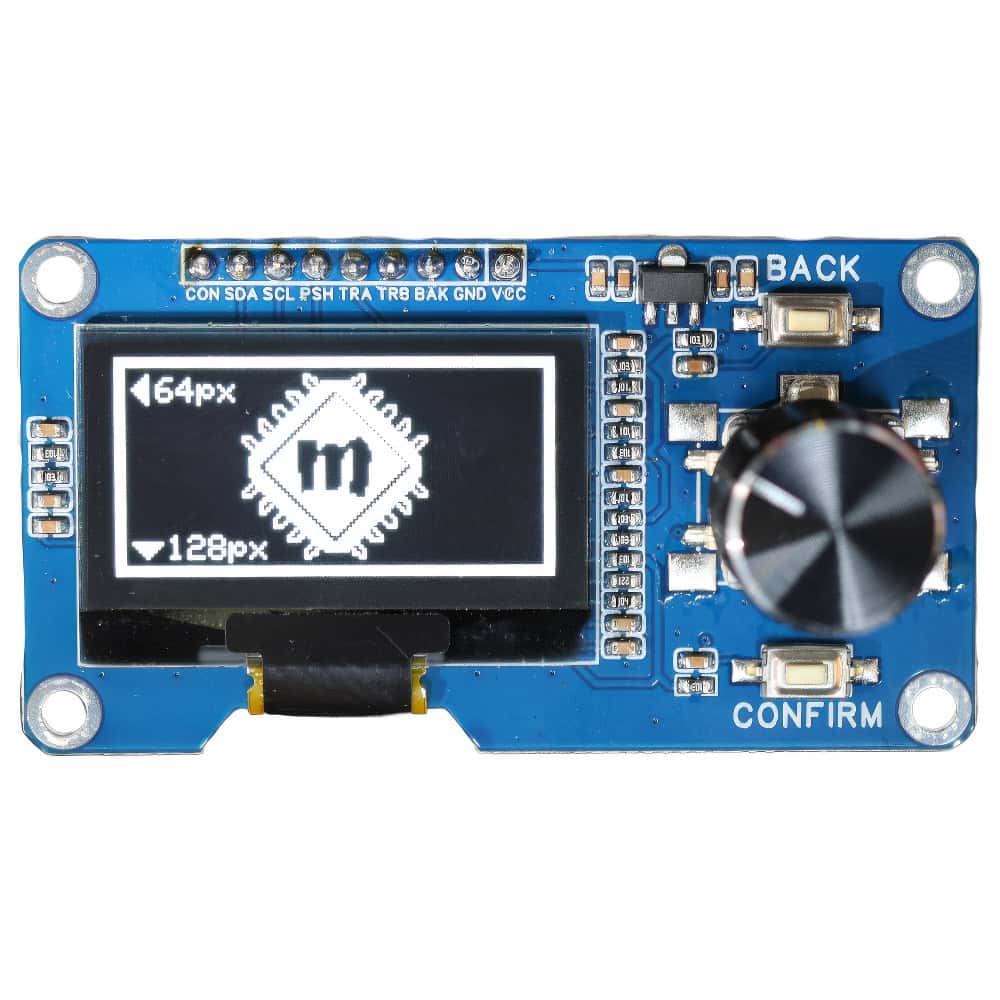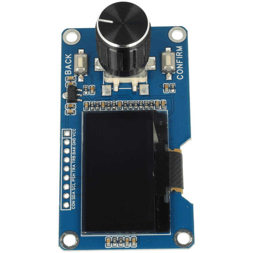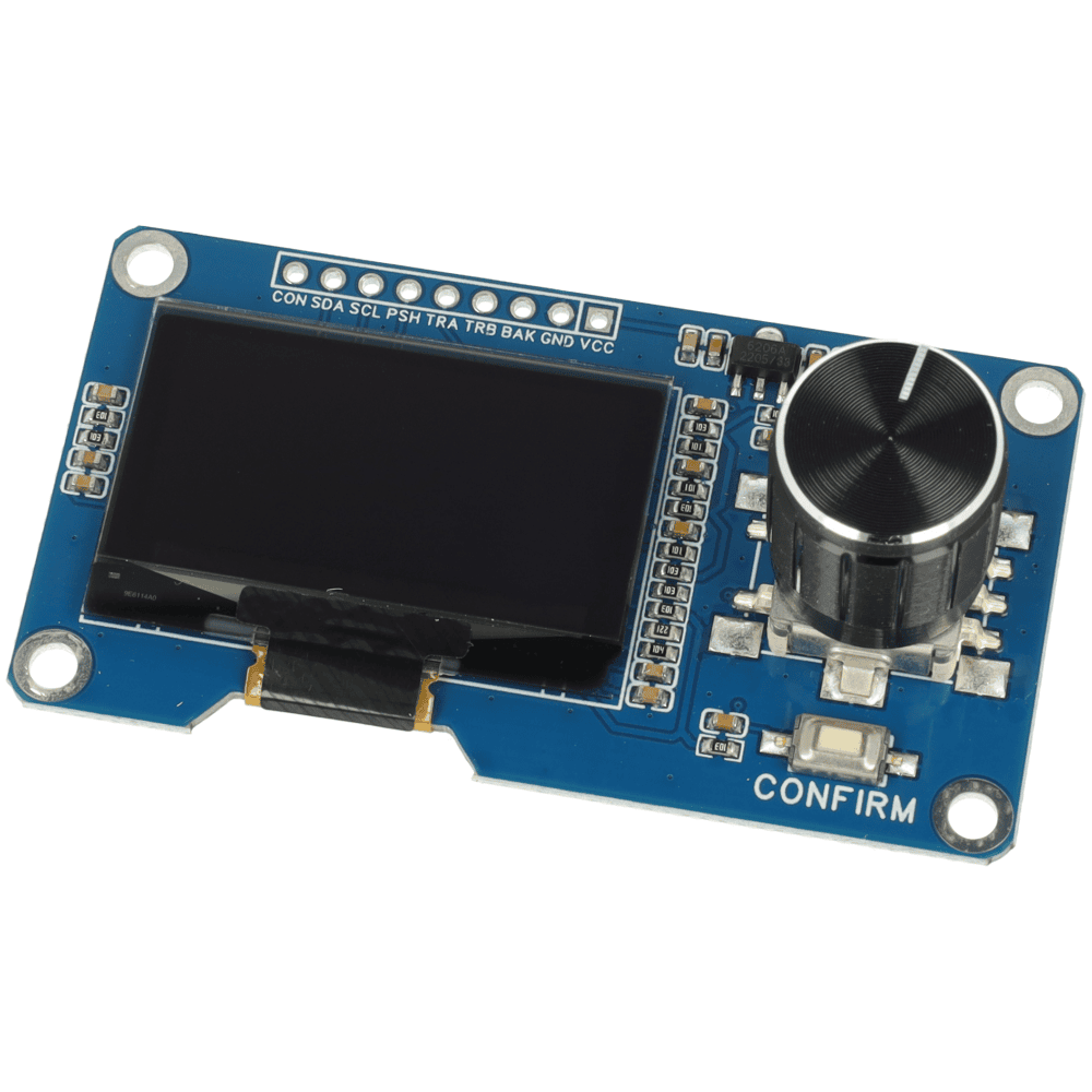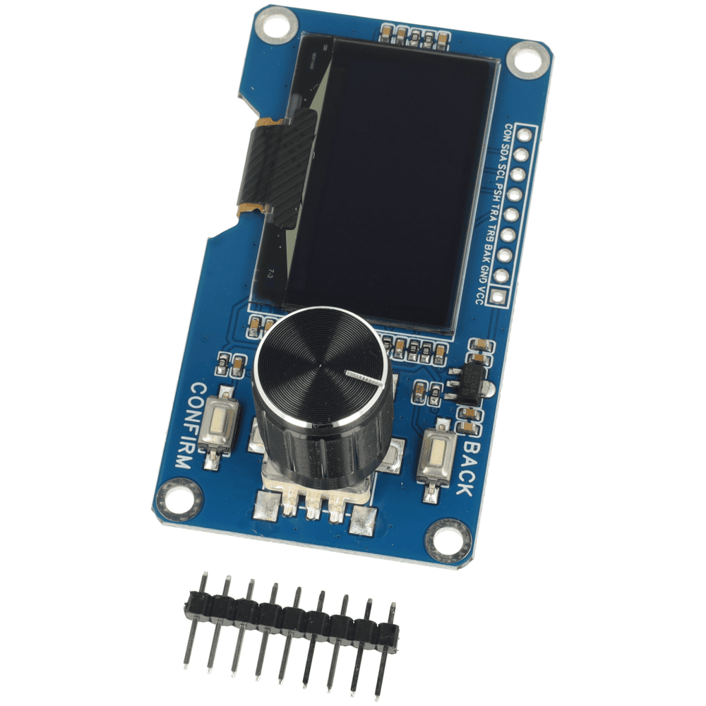 Łączy biały ekran OLED z precyzyjnym enkoderem EC11 oraz przyciskiem.