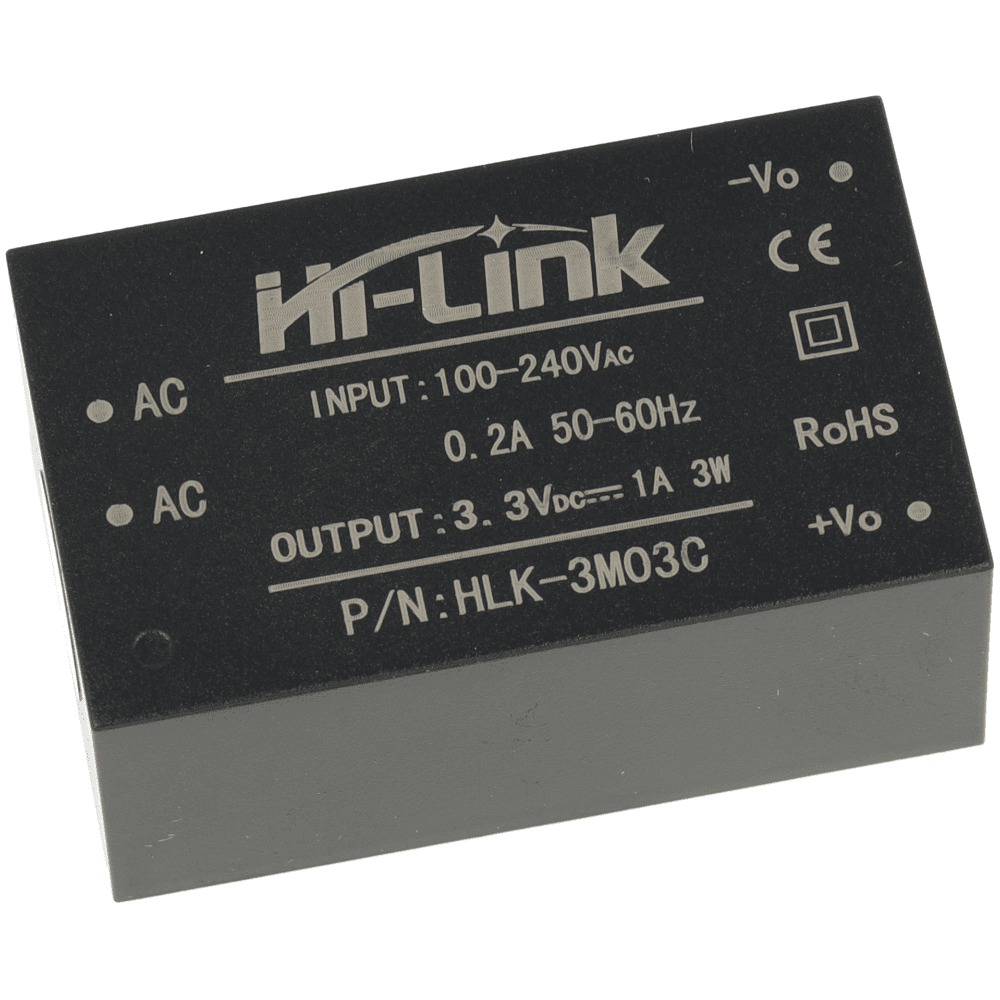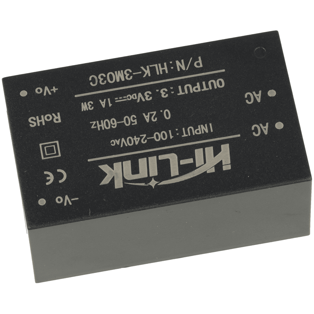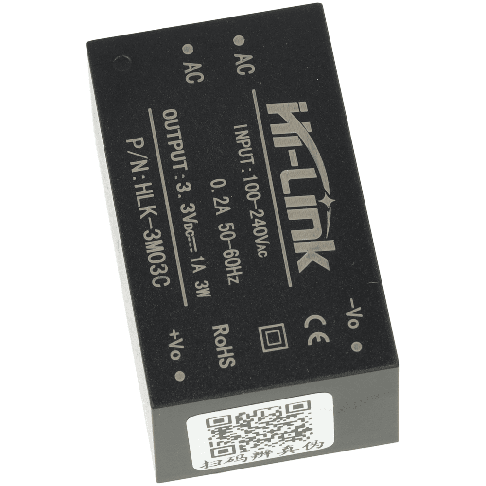 Zasilacz Hi-Link HLK-3M03C to kompaktowy moduł AC-DC, który przetwarza napięcie sieciowe 85 – 265 V AC na stabilne napięcie 3,3 V DC.
