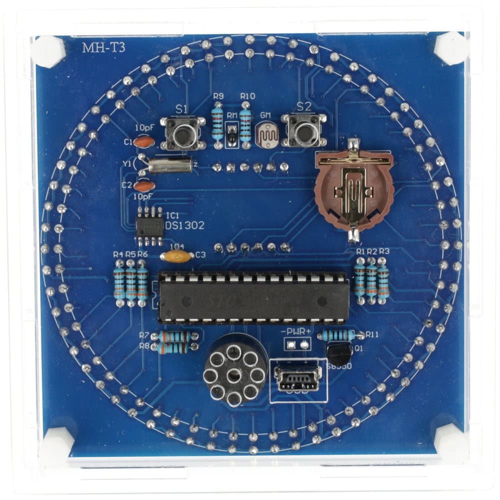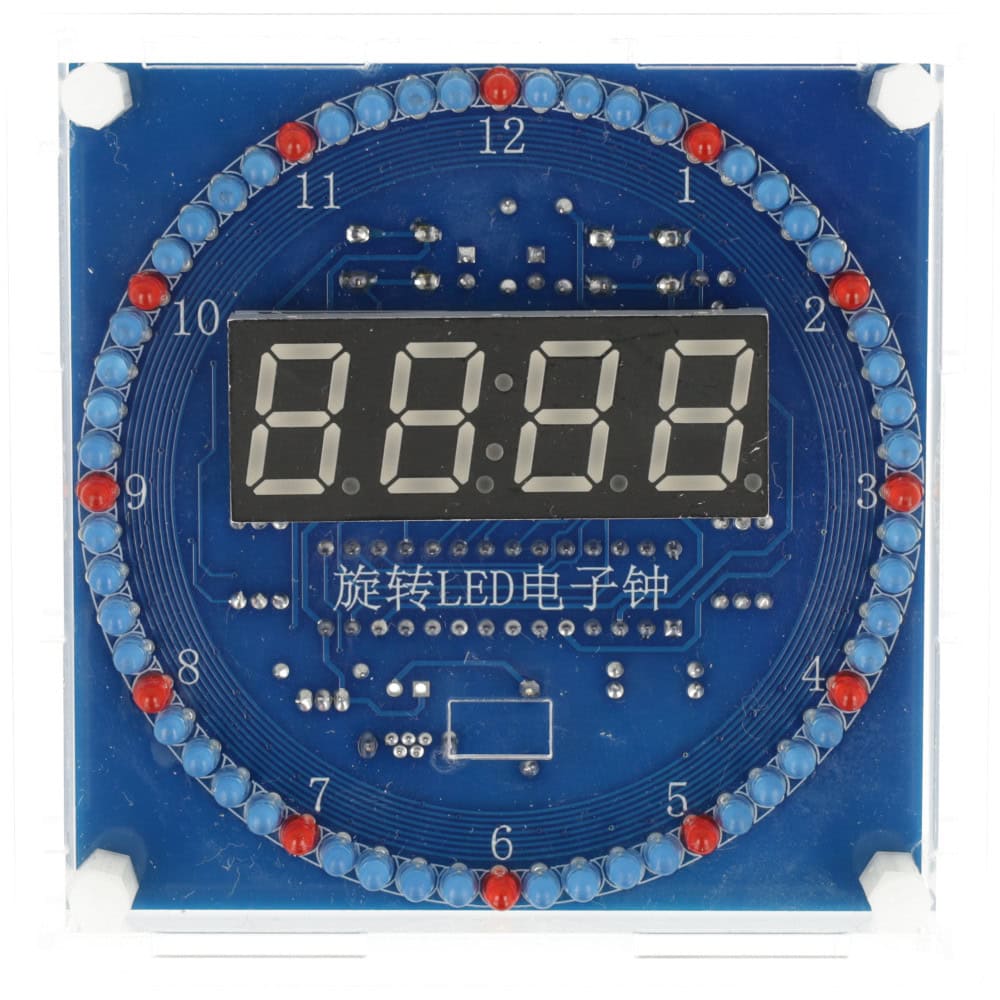 Elektroniczny zegar LED z funkcją obrotowego termometru do samodzielnego montażu i lutowania + obudowa. Doskonały projekt dla pasjonatów elektroniki i majsterkowania.