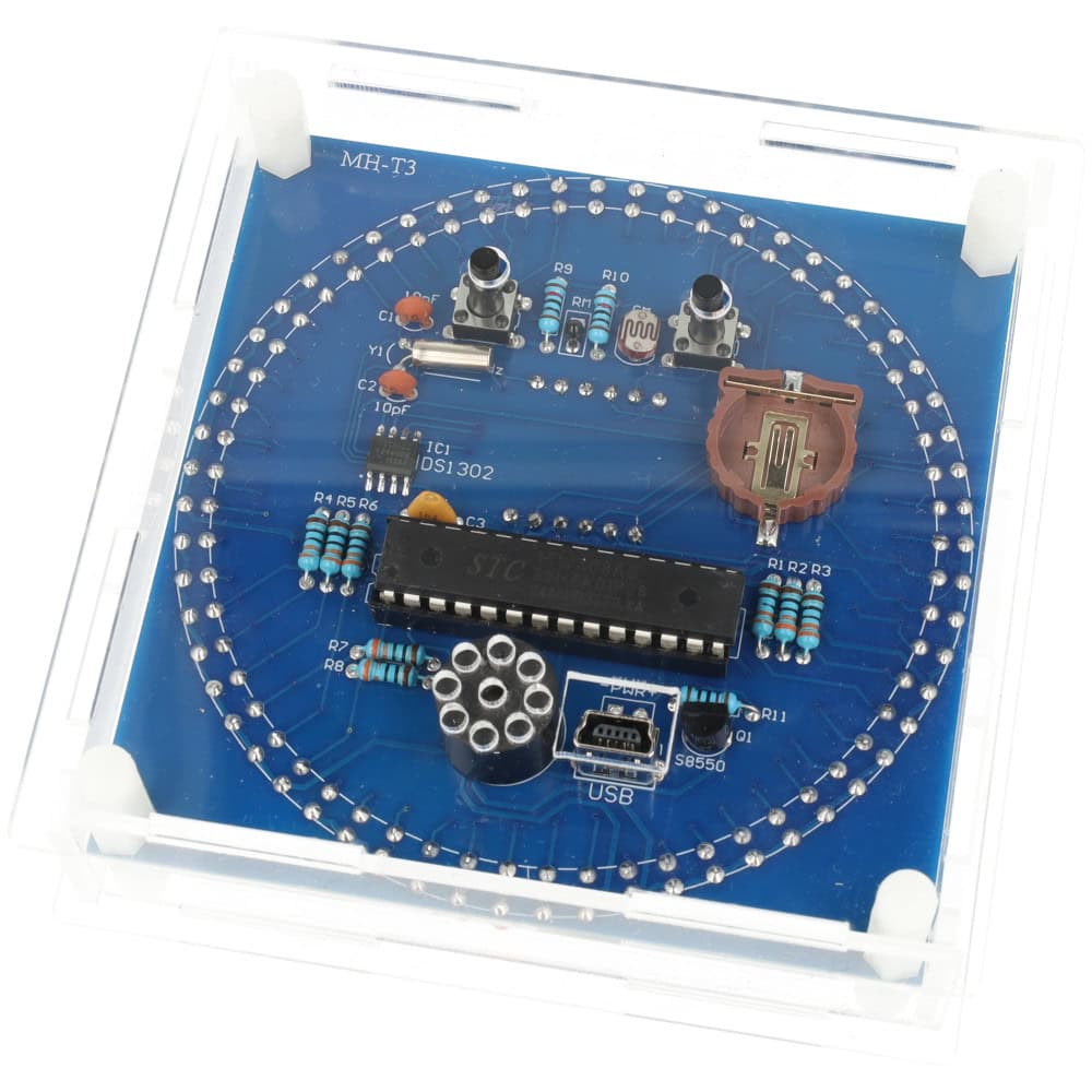 Elektroniczny zegar LED z obrotowym termometrem do samodzielnego montażu + obudowa, idealny zestaw dla fanów elektroniki i DIY. W komplecie wszystkie niezbędne elementy oraz kabel zasilający USB.