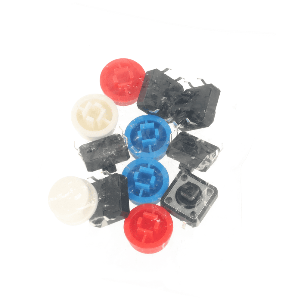 - 🎛️ Przełączniki: 6 szt. (2 × czerwony, 2 × biały, 2 × niebieski)